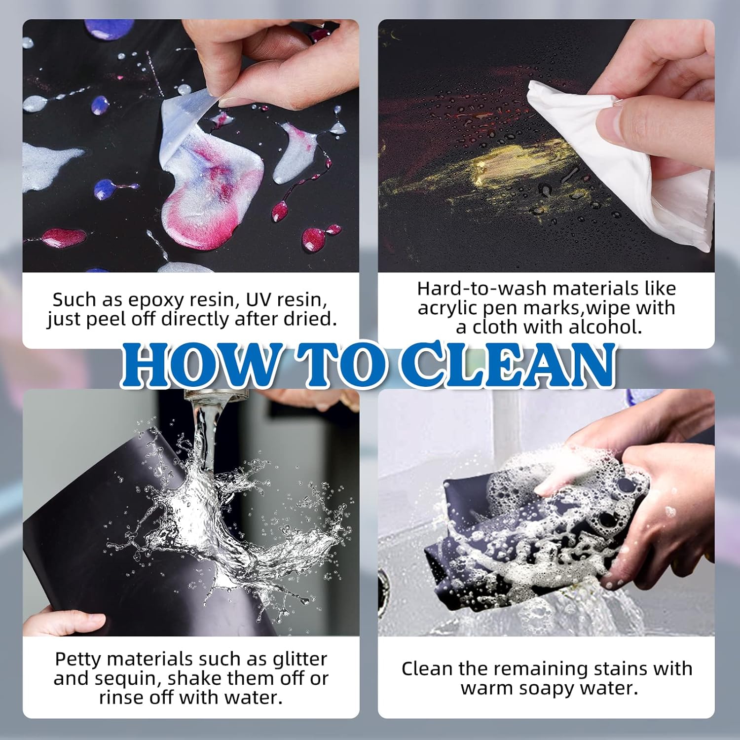 - Easy to Clean & Store: The craft mat is made of waterproof material that can be cleaned easily. It is flexible, lightweight, easy to fold or roll up, and is easy to store and carry. Clean tips: ① Such as epoxy resin, UV resin can be directly peeled off after drying;② Hard-to-wash materials like acrylic pen marks, can be wiped with a cloth with alcohol; ③ Petty materials like glitter and sequin, shake them off or rinse off with water; ④ Clean the others with warm soapy water.