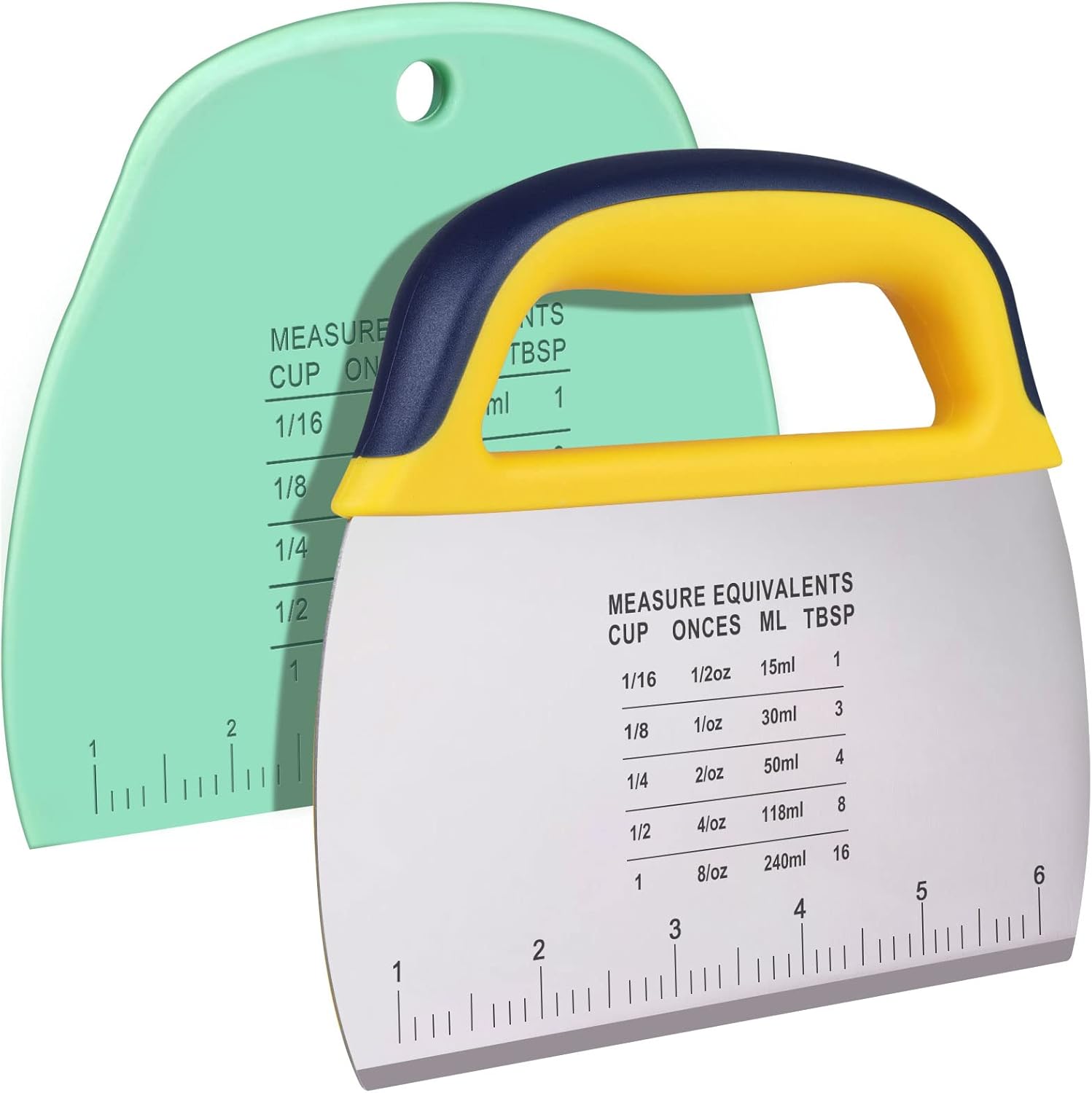 YGDZ Dough Scraper 2 PCS, Stainless Steel Bench Scraper With Grip, Plastic Dough Cutter with Measuring Scale, Multipurpose Pizza Cutter, Pastry Scraper, Bread Scraper for Baking, Dough, Cake