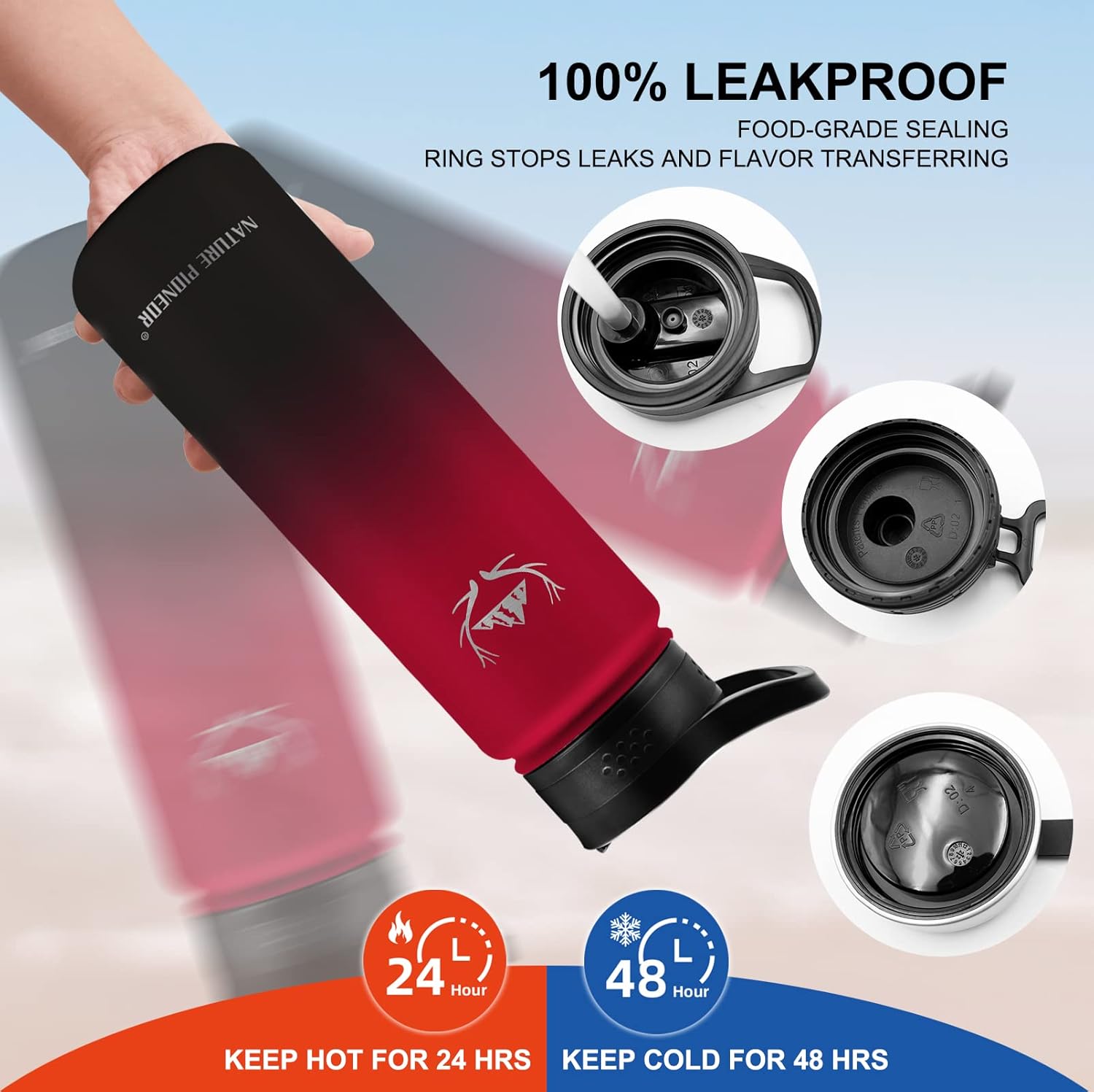 NATURE PIONEOR Insulated Water Bottles with Straw - 24oz Stainless Steel Vacuum Bottle with Holder/Carrier/Sleeve - Reusable 18/8 Food Grade 24 oz Water Jug