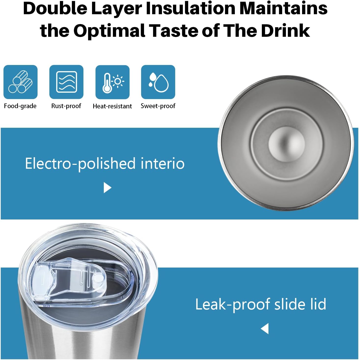 - 【Double Wall Vacuum Insulation】 Stainless steel tumblers adopts the technology of double walled vacuum insulation design keeps beverages hot up to 6 hours and cold up to 12 hours and prevent sweating or condensation.Keep cool outside! This insulated tumbler with straw provides a more enjoyable drinking experience.