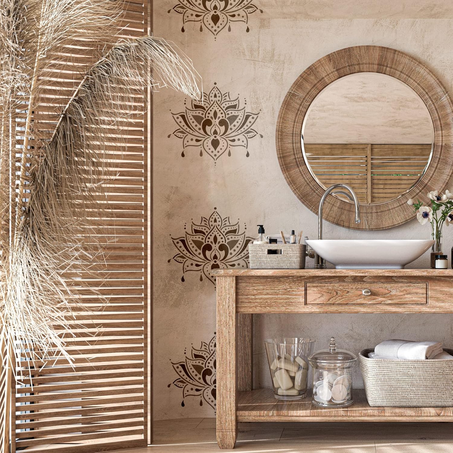 NAKLEO Painting Stencil for Crafts A4 8.3” x 11.8”, Indian Lotus Flower Pattern, Reusable Plastic DIY & Scrapbooking Drawing Template, Decoupage Art Home Decor, Wall Wood Fabric Furniture
