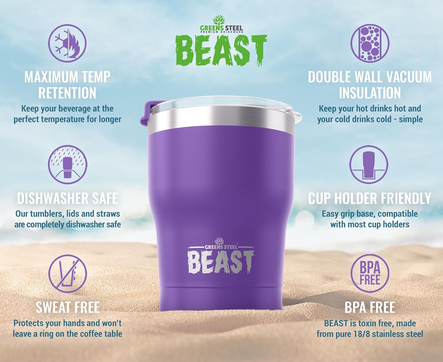 Beast 10 oz Tumbler Stainless Steel Vacuum Insulated Coffee Ice Cup Double Wall Travel Flask (Purple)