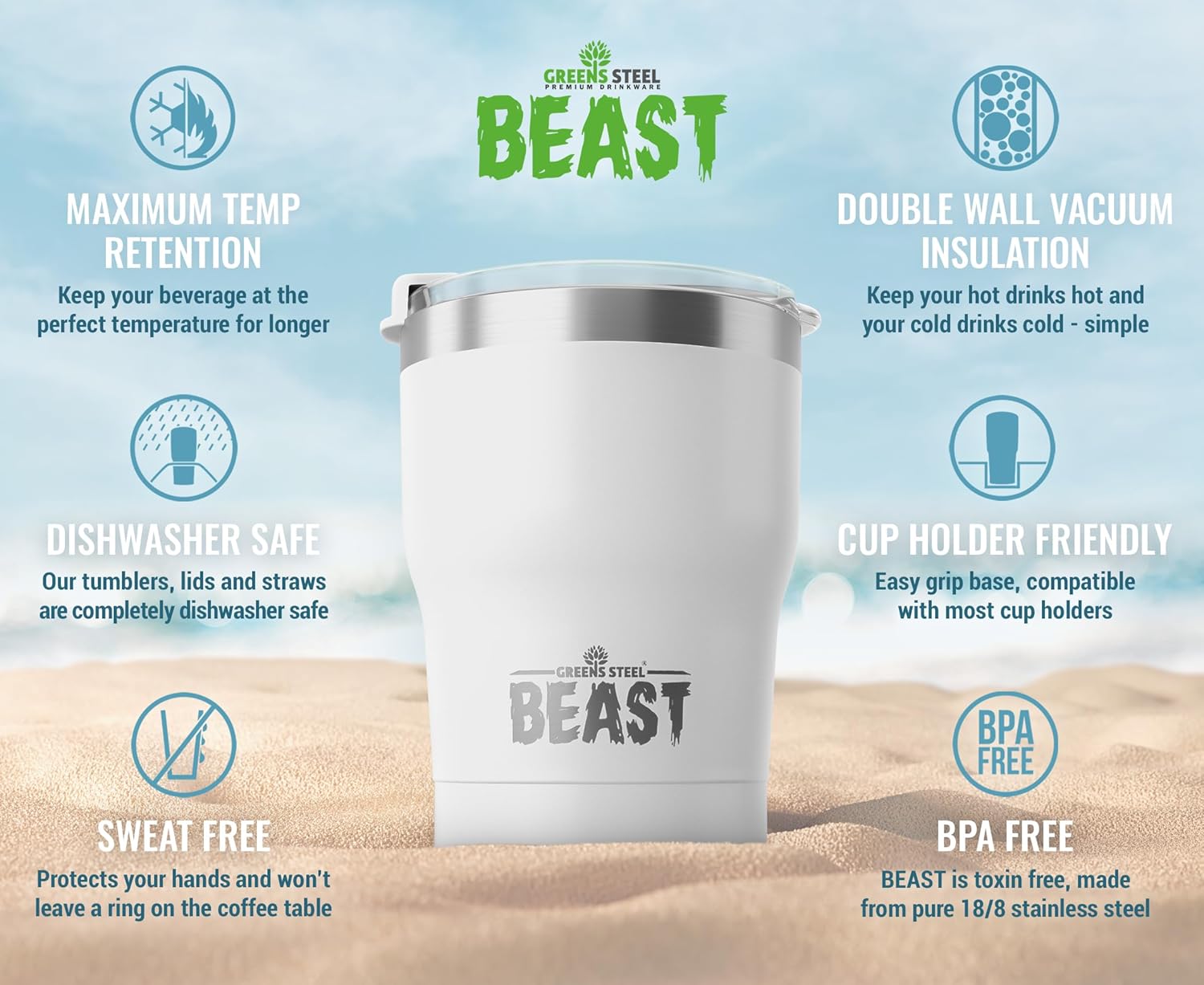 Beast 10 oz Tumbler Stainless Steel Vacuum Insulated Coffee Ice Cup Double Wall Travel Flask (Arctic White)