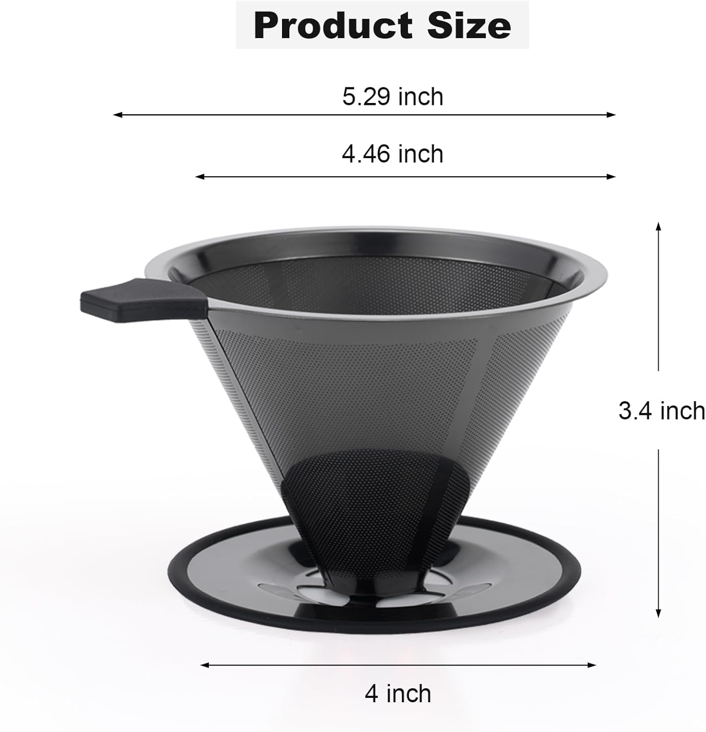 - 【EXCELLENT QUALITY】Our coffee filter cone is made from high quality stainless steel and titanium coated ,double-layer fine metal mesh enhances the ability to filter coffee grounds.