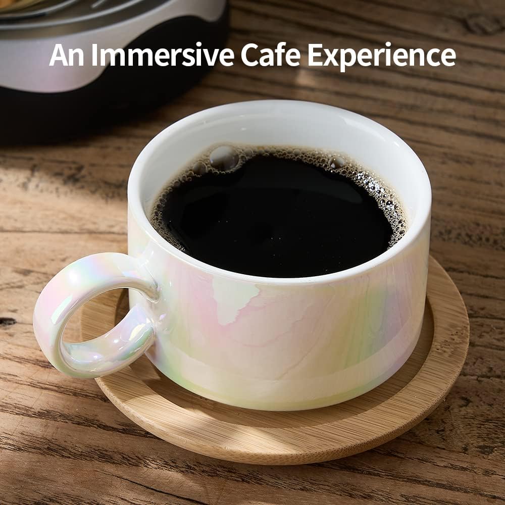 - 【SAFE FOR DISHWASHER, MICROWAVE, OVEN AND FREEZER】These espresso cups are made of durable porcelain,it is Lead and Cadmium-freethis set gives off an uncomplicated and polished allure, harmless. It's perfect for serve up piping hot cups of coffee, tea, signature lattes, and other warm, indulgent beverages.
