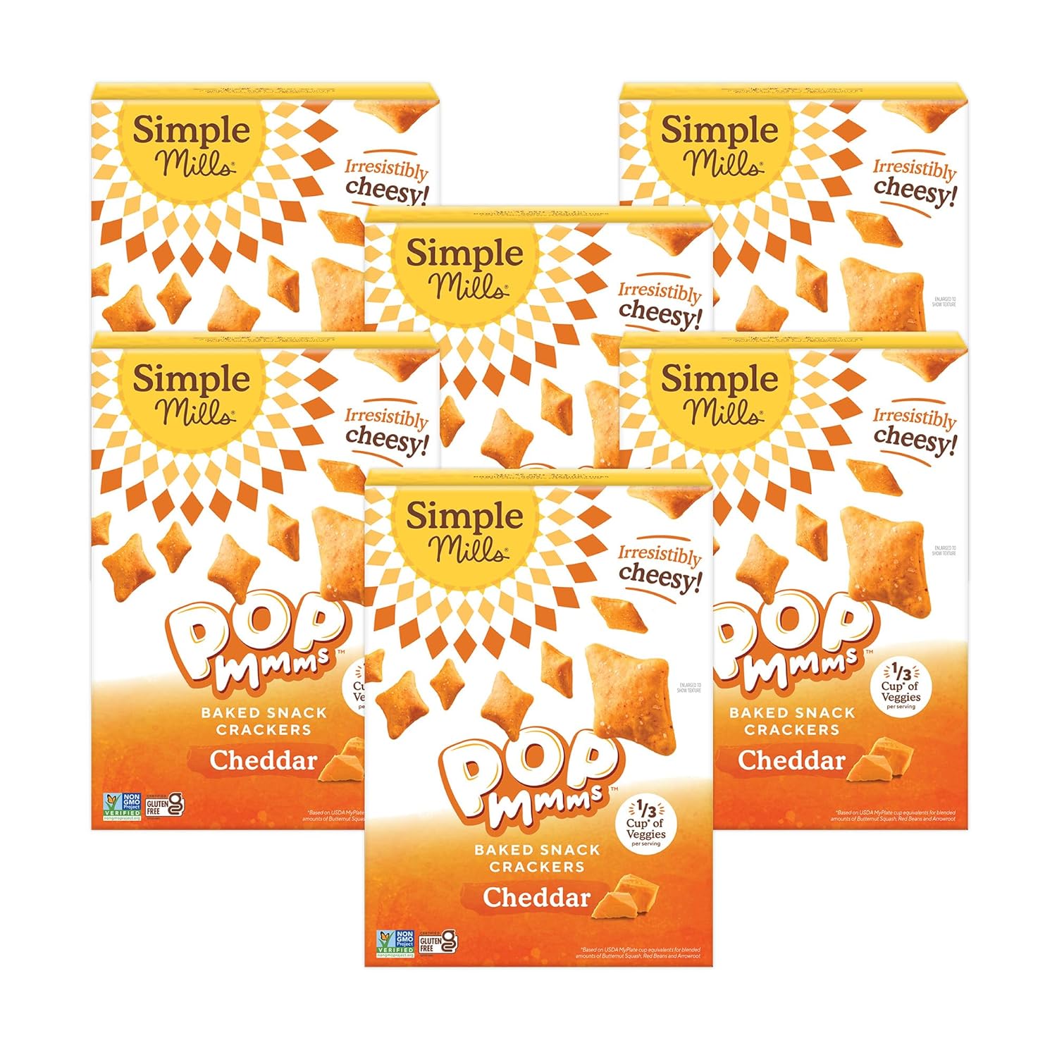 - Simple Mills Pop Mmms Veggie Flour Baked Snack Crackers, Cheddar, Nothing Artificial, Kosher, Gluten Free & Non-GMO, 4 Ounce (Pack of 6)