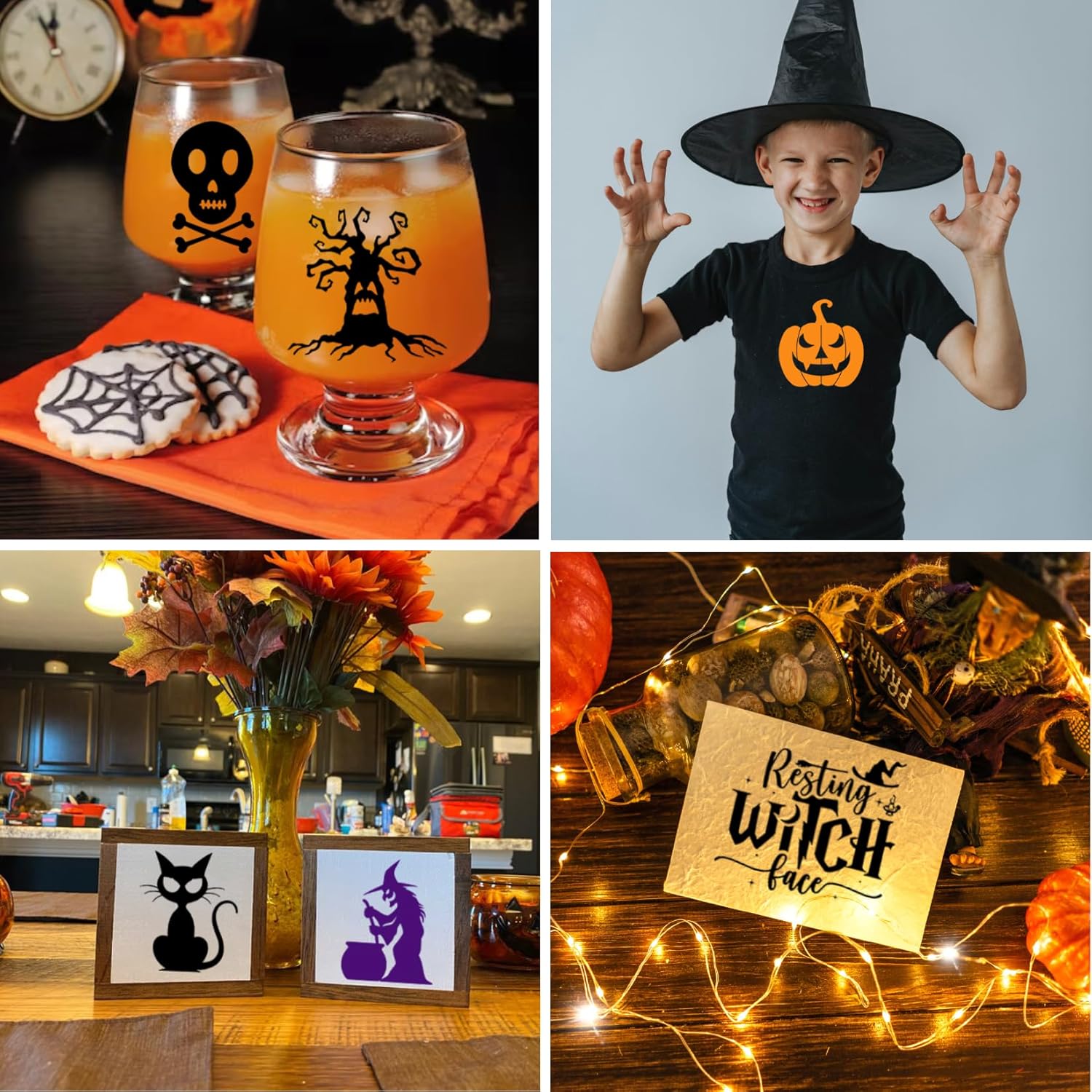 - Applicable Occasions: These reusable Halloween stencils for painting on wood, canvas, gift card, fabric, furniture, paper, ceramic, metal, wall, window, glass, and more, they are suitable with acrylic paints, chalk painting, sponge brush tapping, air spraying, and small brush for painting or drawing