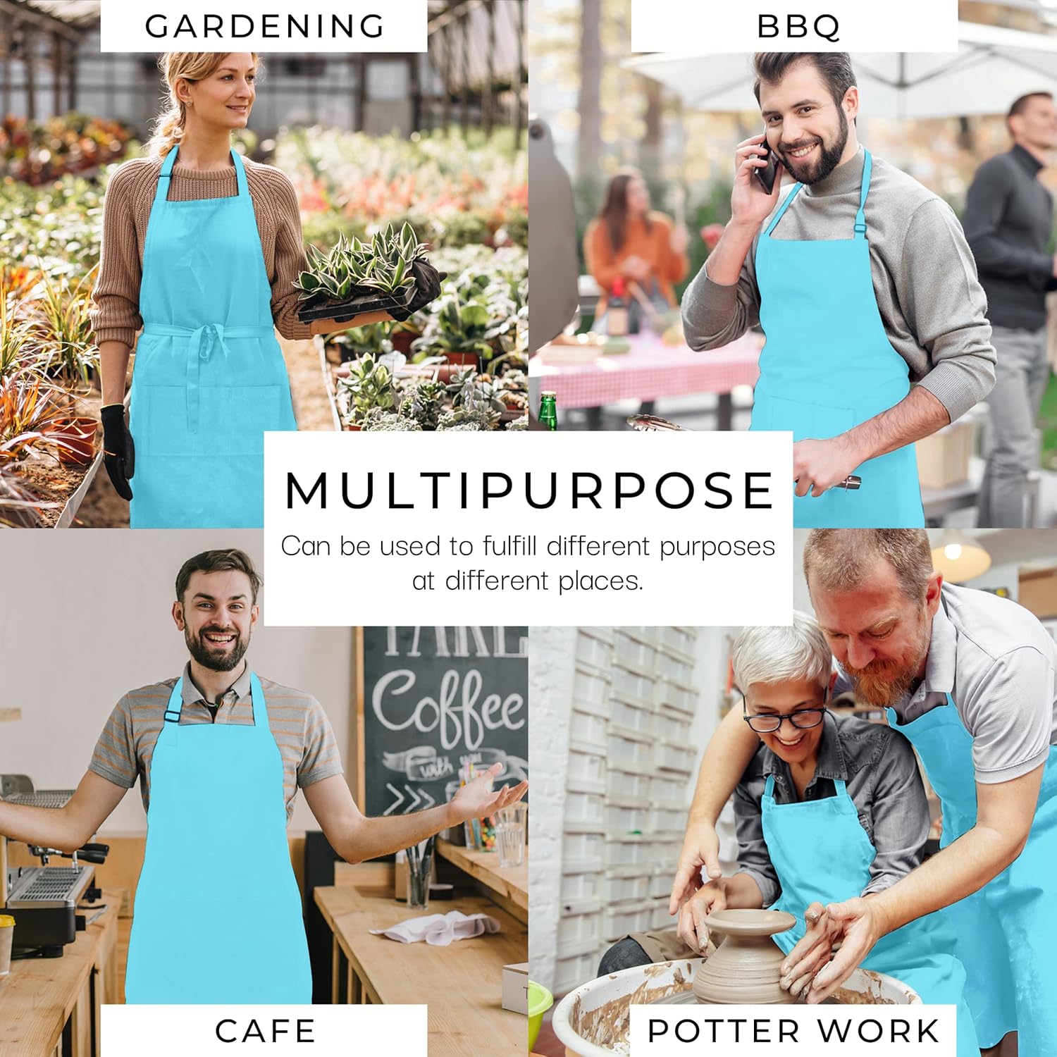 - Premium Quality: Crafted from 100% cotton, Aqua Blue set of 2 apron offers exceptional breathability and comfort for extended wear, ensuring you stay cool and dry even during long hours of use.