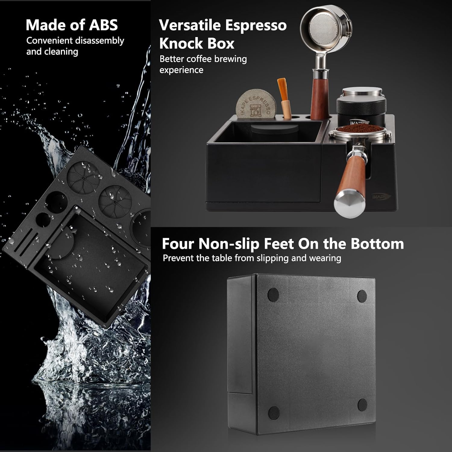 IKAPE Espresso Knock Box, Espresso Coffee Organizer Box Fit for Storage 51, 54, 58MM Espresso Tamper, Distributor, Portafilter & Puck Screen Accessories, Plastic Station Base(Black)