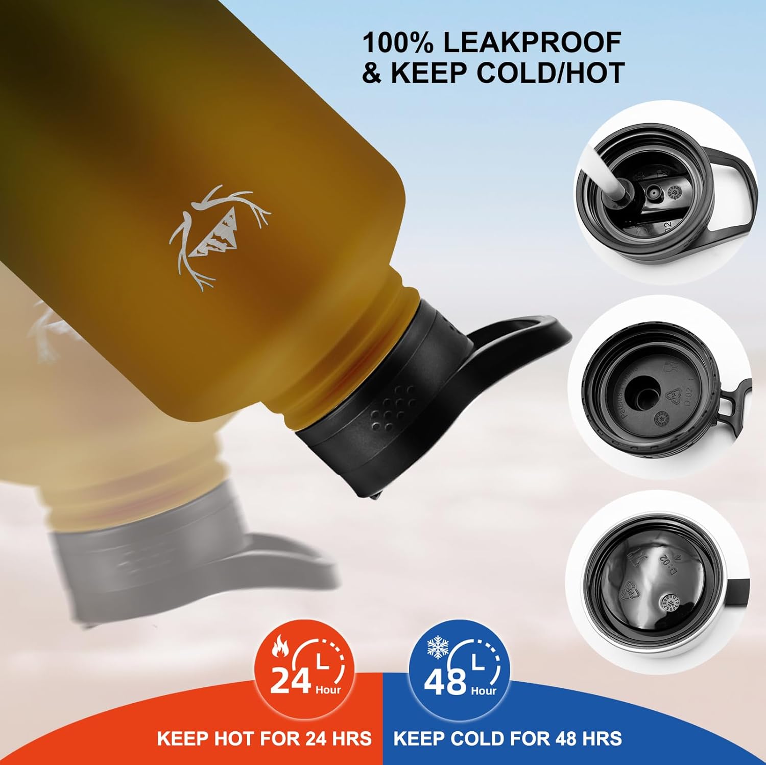- 【Triple-Layer Vacuum Insulation】 – This insulated water bottle is engineered with triple-wall, vacuum-sealed insulation and made from premium 18/8 food-grade stainless steel. This advanced design locks in temperature, keeping drinks ice-cold for up to 48 hours or steaming hot for up to 24 hours. The no-sweat exterior prevents condensation and protects your hands from heat or frost, making it reliable for outdoor sports, travel, camping, and daily hydration
