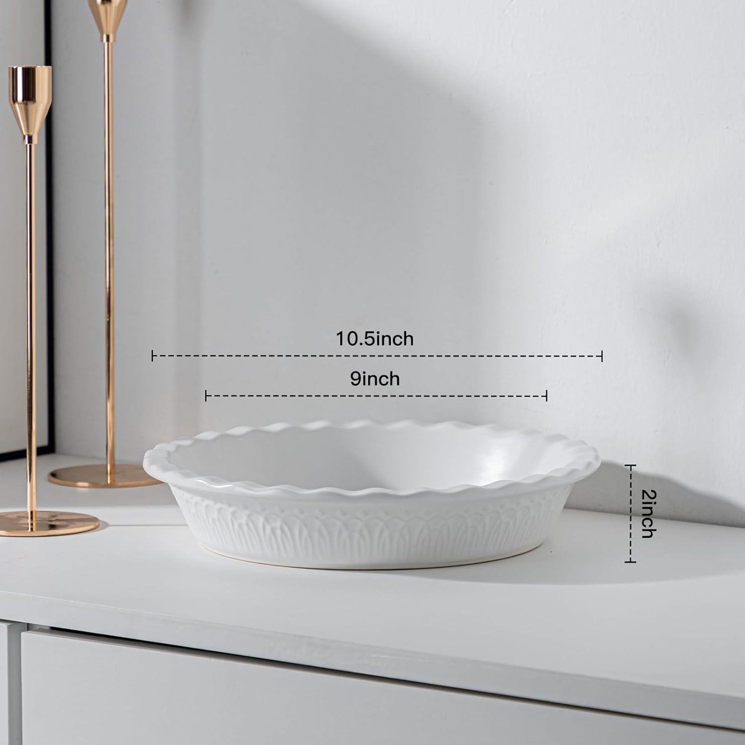 Fun Elements Ceramic Pie Pan, 9 Inch Pie Dish for Baking, Ruffled Pie Plate, Non-Stick Deep Dish Pie Pan for Apple Pie and Pot Pie, Thanksgiving Christmas Gifts, Set of 2, White