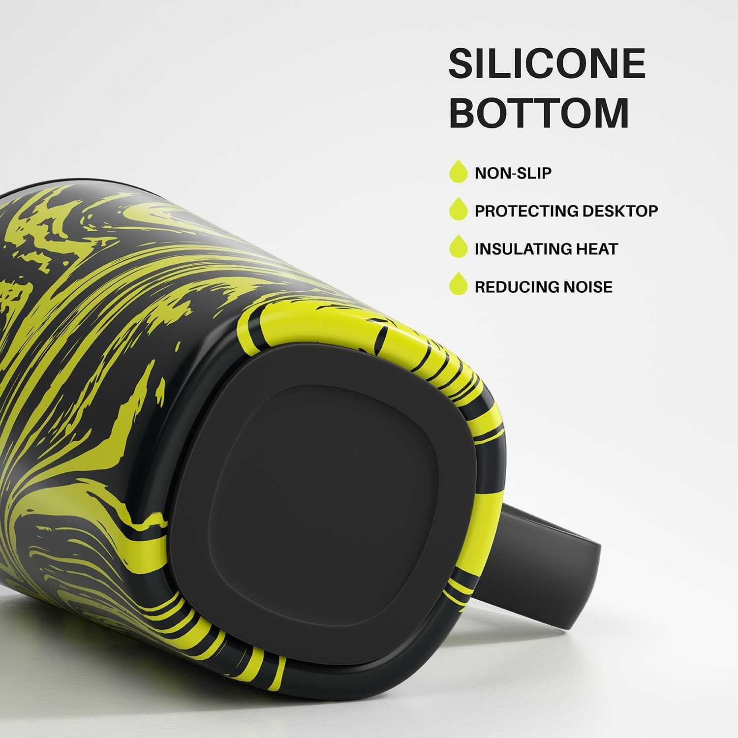 Ideus Vacuum Insulated Coffee Mug, 16oz Reusable Stainless Steel Thermal Double Walled cup with Handle and Slider Lid for Hot & Cold Beverages, BPA Free (Yellow Zebra)