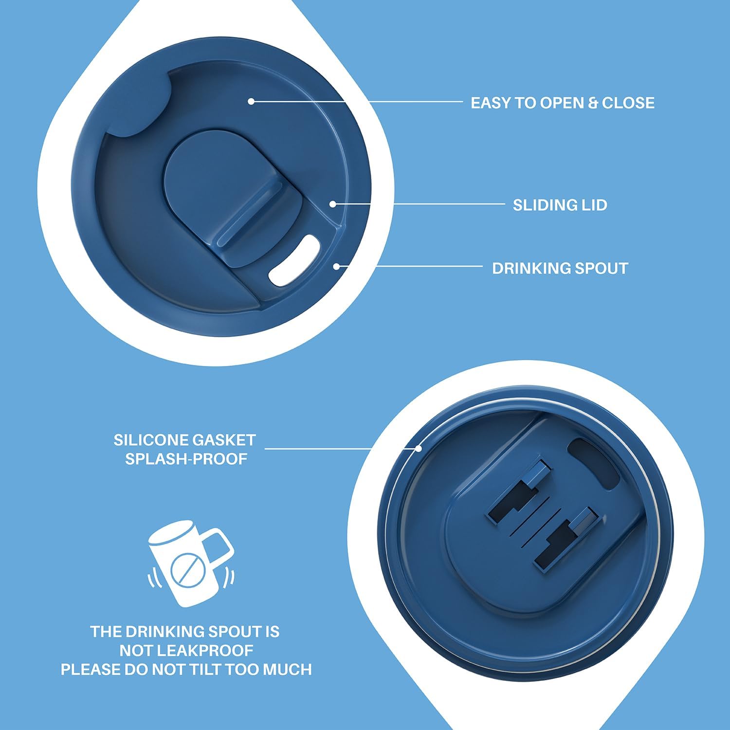 - Special Feature : Condensation Resistant, Double Wall, Non-Slip, Sliding Lid, Spill Proof