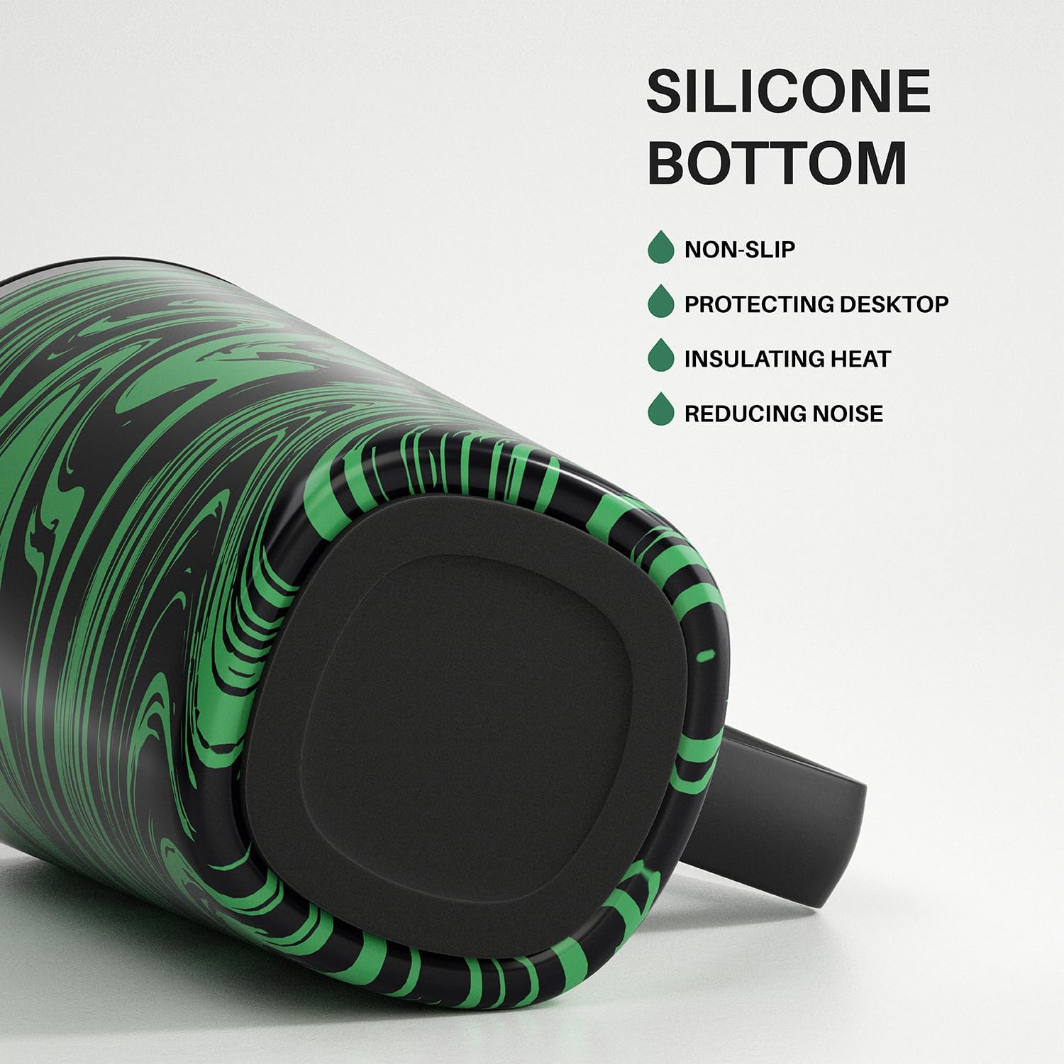 Ideus Vacuum Insulated Coffee Mug, 16oz Reusable Stainless Steel Thermal Double Walled cup with Handle and Slider Lid for Hot & Cold Beverages, BPA Free (Green Zebra)