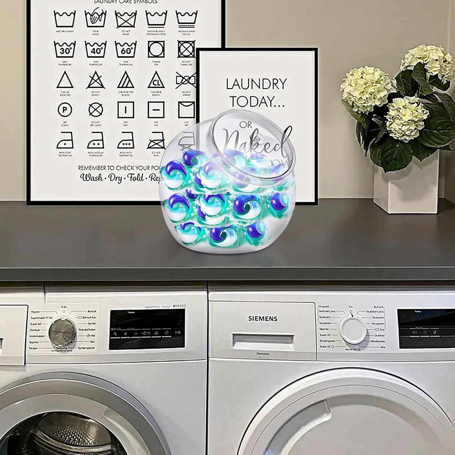 - MULTI-PURPOSE USE - This clear storage canister is not only designed for candy, it can also be used to storage coffee capsules, sweeteners, creamers, nuts, cookies, snacks, cereals, laundry pods, laundry detergent, laundry soap,laundry scent boosters, and even storage cat/dog food