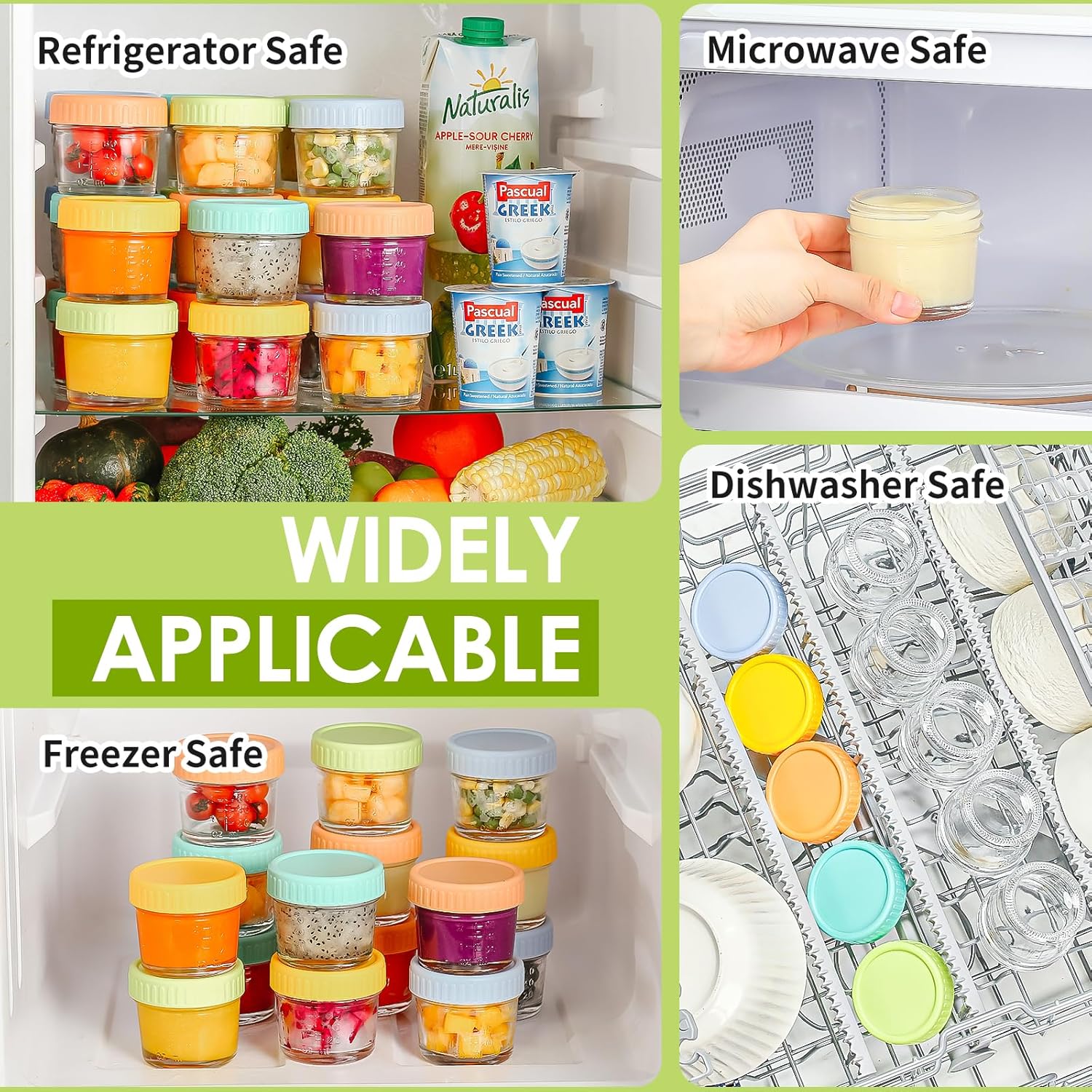 DRKIO 20 Pack Glass Baby Food Storage Containers 4 Oz Baby Food Jars with Lids Baby Food Maker Microwave Dishwasher Freezer Safe 100% Leak-Proof BPA Free