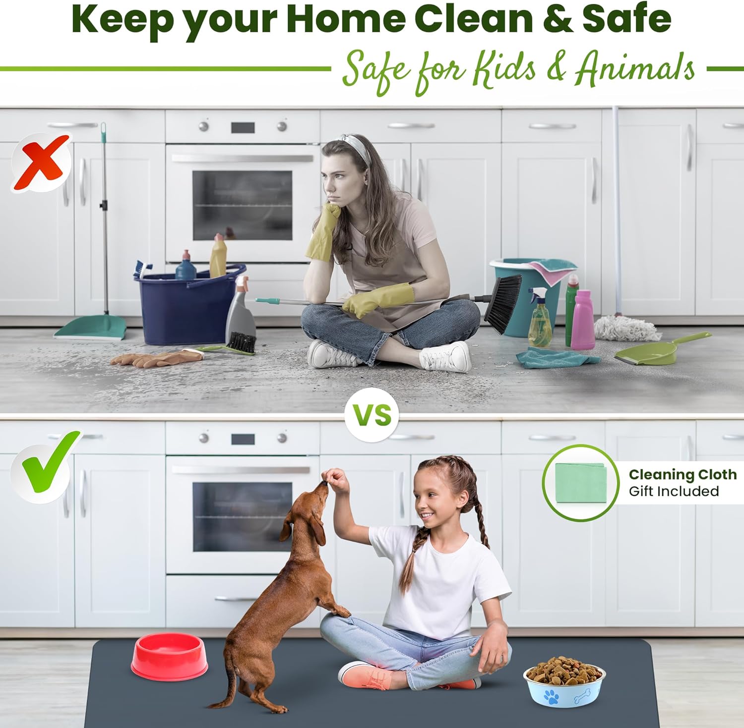 Premium Silicone Mat 25" x 17" Multipurpose Cooking Mat Thick Heat Resistant, Kitchen Counter Mat Waterproof - Coffee Machine, Countertop Protector Air Fryer, Baking mat (Grey)