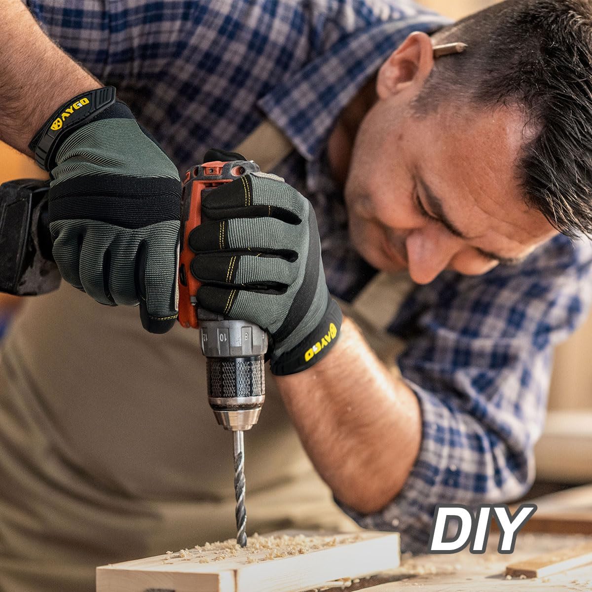 KAYGO Work Gloves For Men, KG125M Mechanic Utility Work Gloves for All Purpose, Excellent Grip, Heavy Duty, Improved Dexterity, Touch Screen,2X-Large