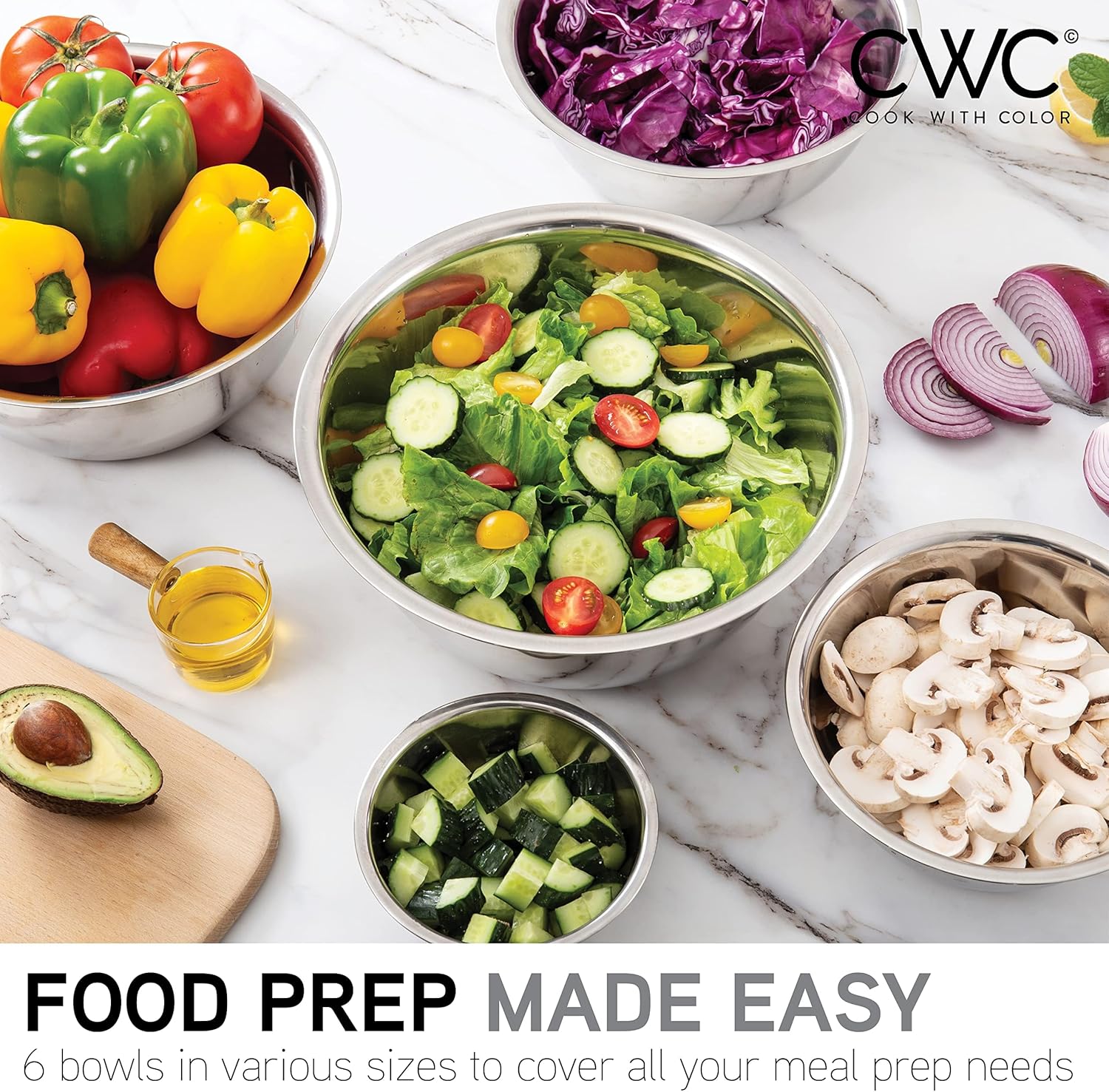 COOK WITH COLOR Stainless Steel Mixing Bowls Set - Nesting Bowls, 6 Pieces, Silver