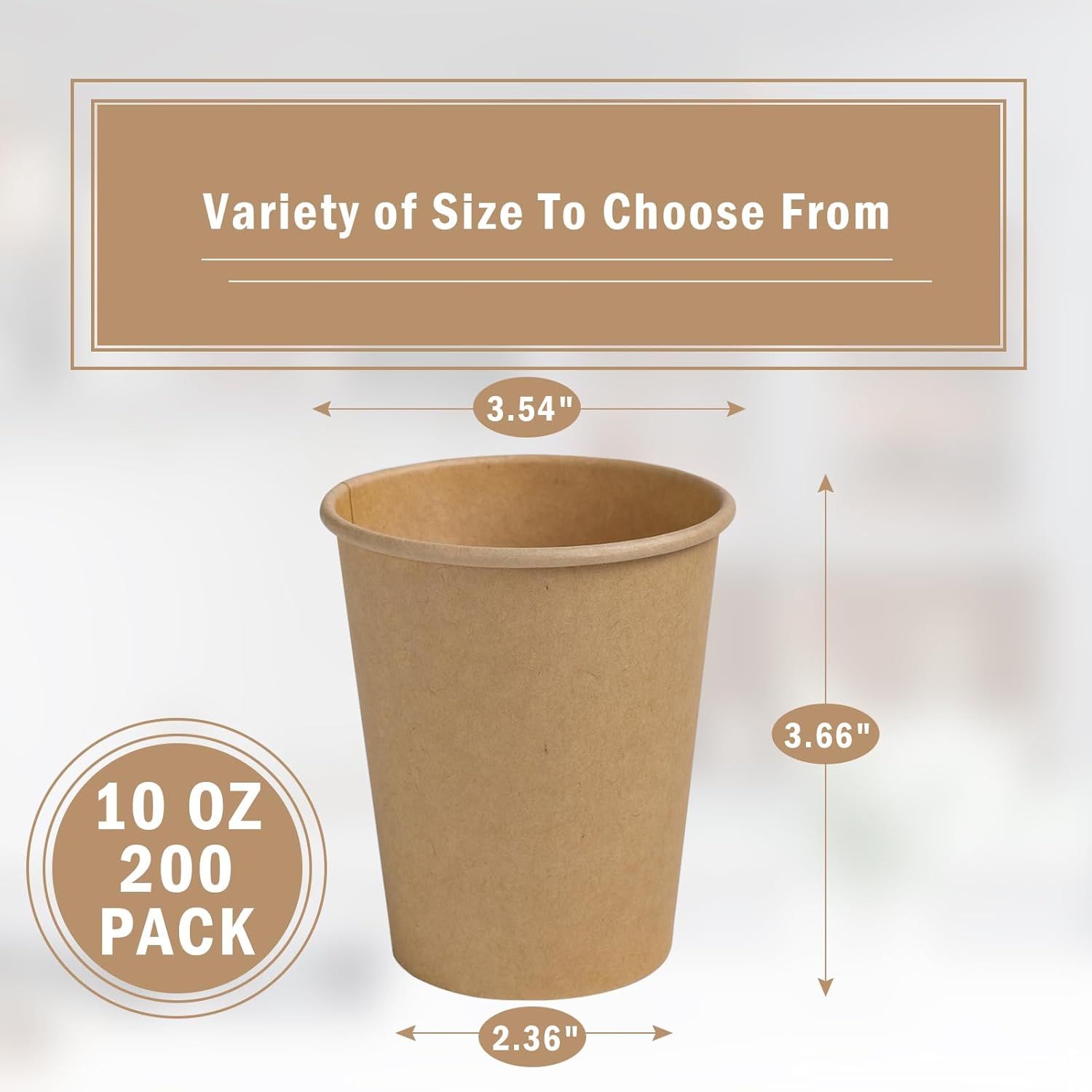 - 【Value Pack】 You will get 200 pack of 10 oz disposable kraft paper cups at a affordable price, enough quantity to meet all your requirements