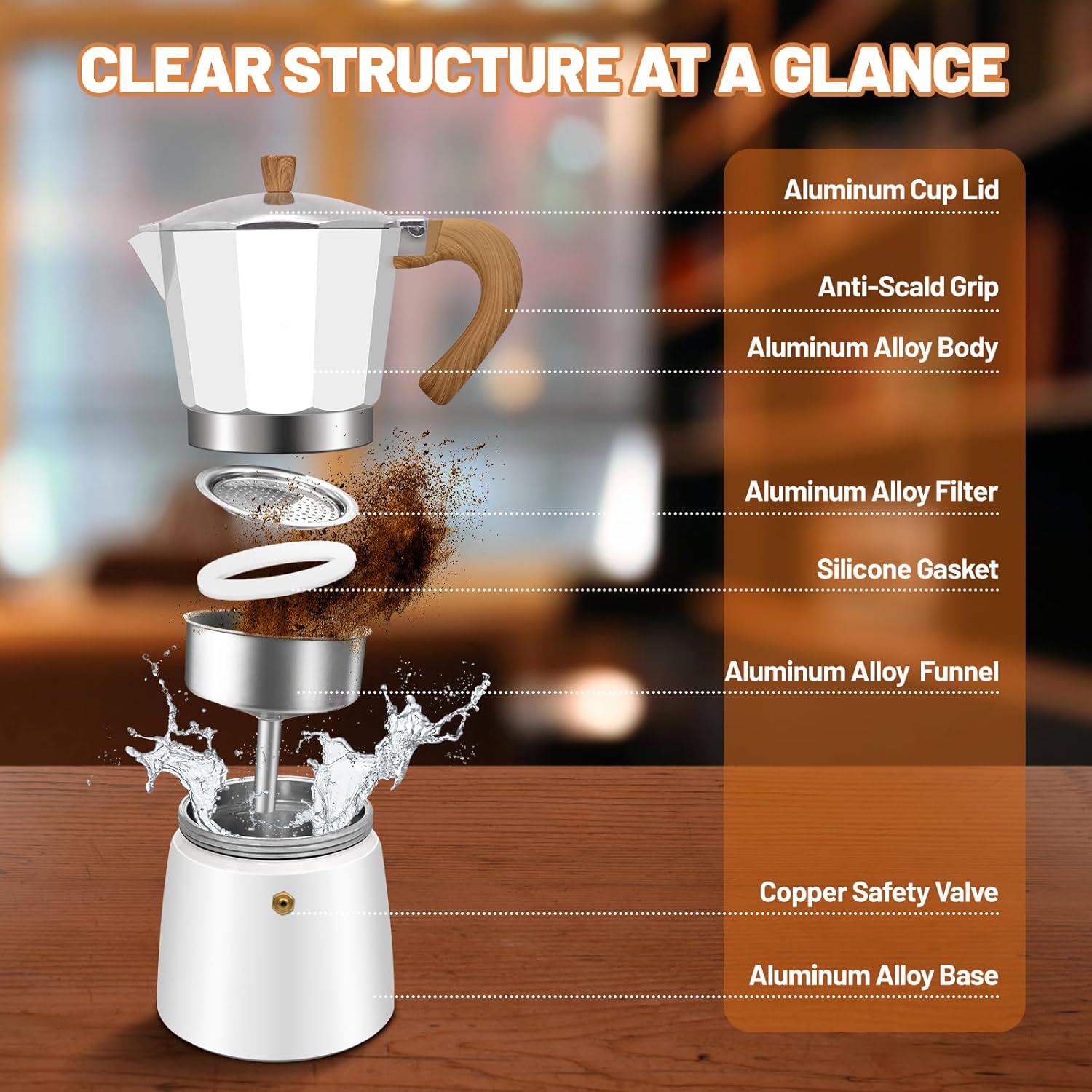 6 Cup Aluminum Espresso Stovetop Moka Pot Express Coffee Maker Percolator Italian Classic Mocha Coffee Machine for Italian and Cuban Cafe Brewing for Home & Camping 300ml 10oz