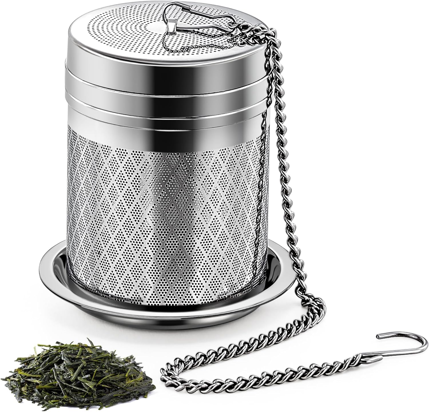 Tea Infusers for Loose Tea, Extra Fine Mesh Tea Strainers, 18/8 Stainless Steel Loose Leaf Tea Steeper Tea Diffusers with Extended Chain Hook and Drip Tray 1 Pack