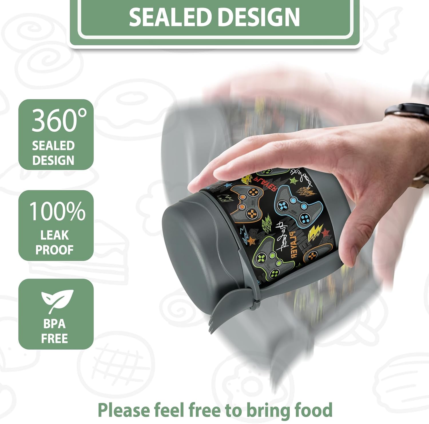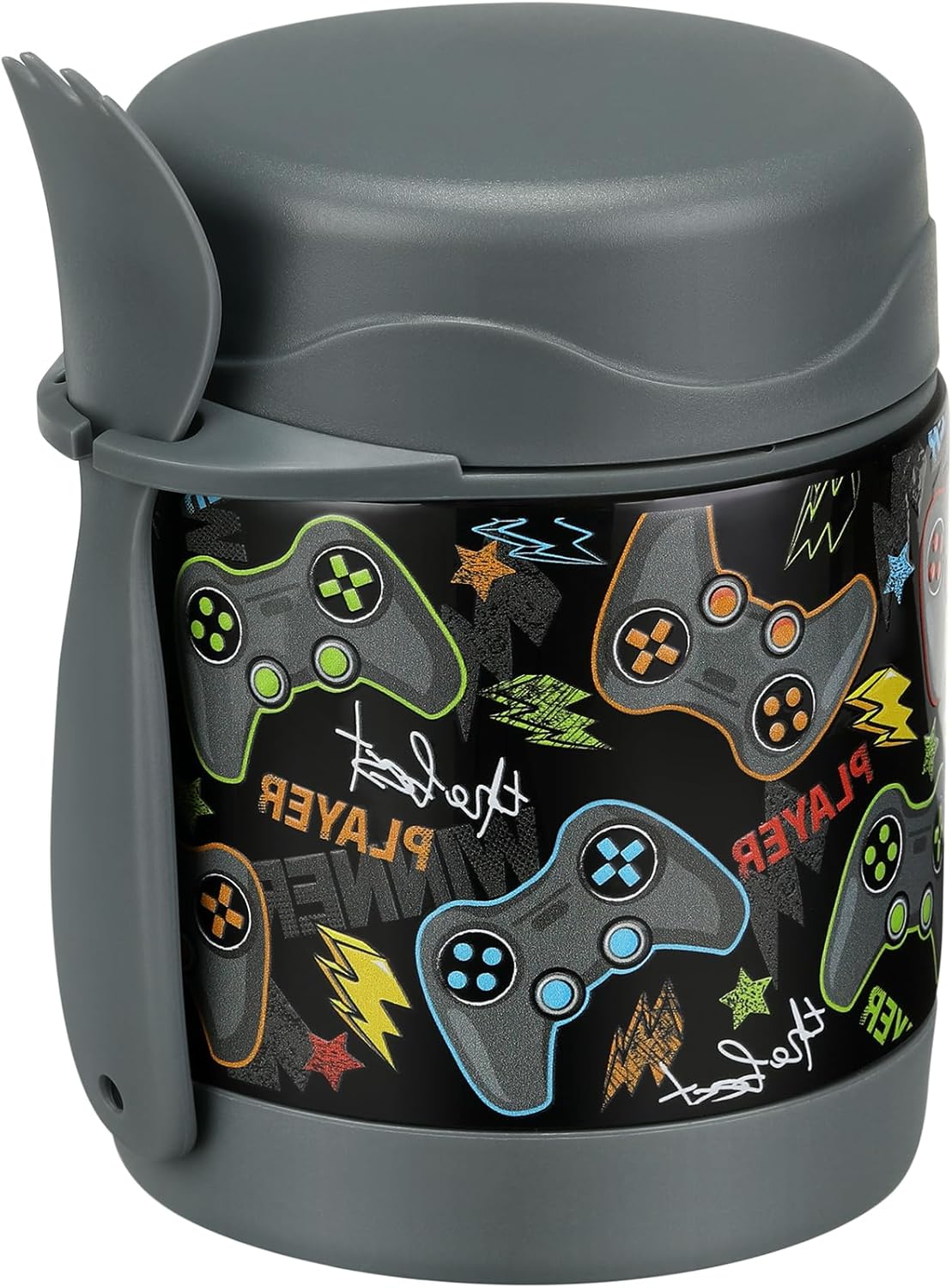 10oz Soup Thermo for Hot Food Kids,Lunch Thermo Kids Food Jar with Spoon Hot Insulated Food Containers,Leak Proof Stainless Steel Wide Mouth Lunch Food Thermo Jar for School(Black-Game Console)