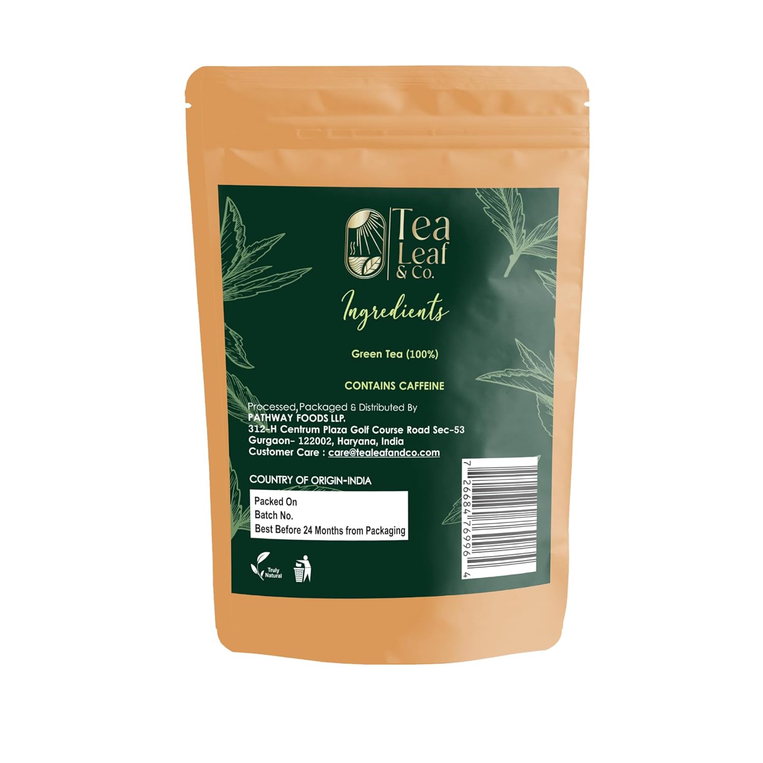 Tealeaf & Co. Classic Green Tea Loose Leaf - 100% Organic Green Tea - Contains Low Caffeine - Upto 50 Servings - Gluten Free (3.52oz/100gm)