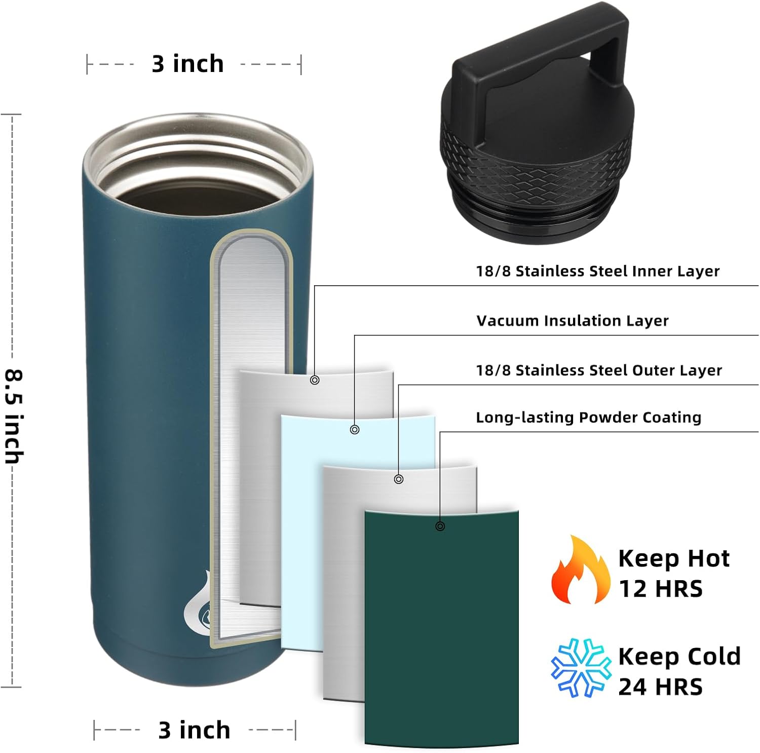 - 18/8 PREMIUM STAINLESS STEEL: Made of food-grade 18/8 stainless steel, coated with environmental anti-slip powder at the surface, fully resistant to oxidation, BPA free, rust and flavor transfer, a perfect metal water bottle for your daily water drinking