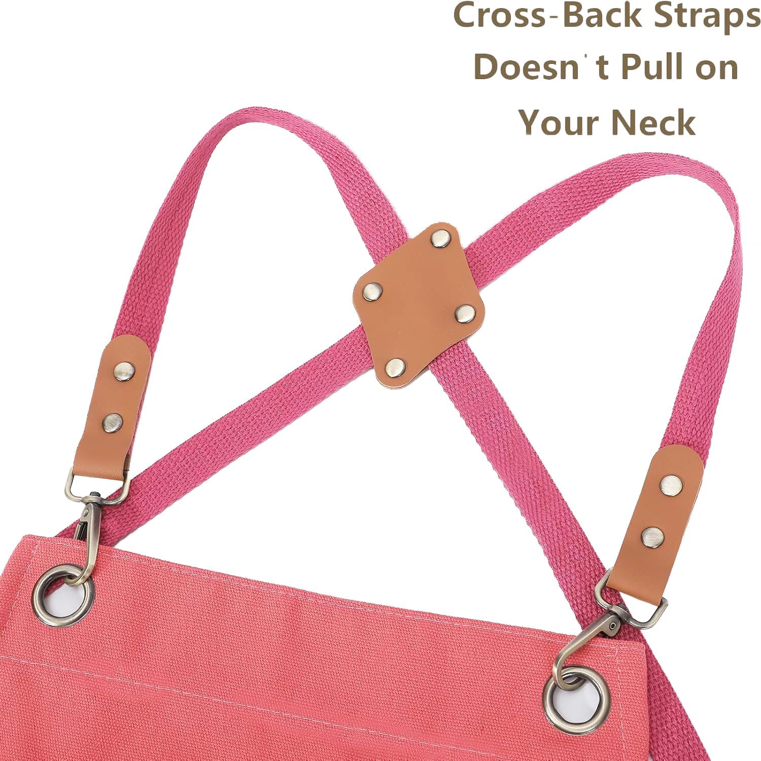 AFUN Chef Aprons for Women Men with Large Pockets, Cotton Canvas Cross Back Water Repellent Work Apron, Size M to XXL (Pink)