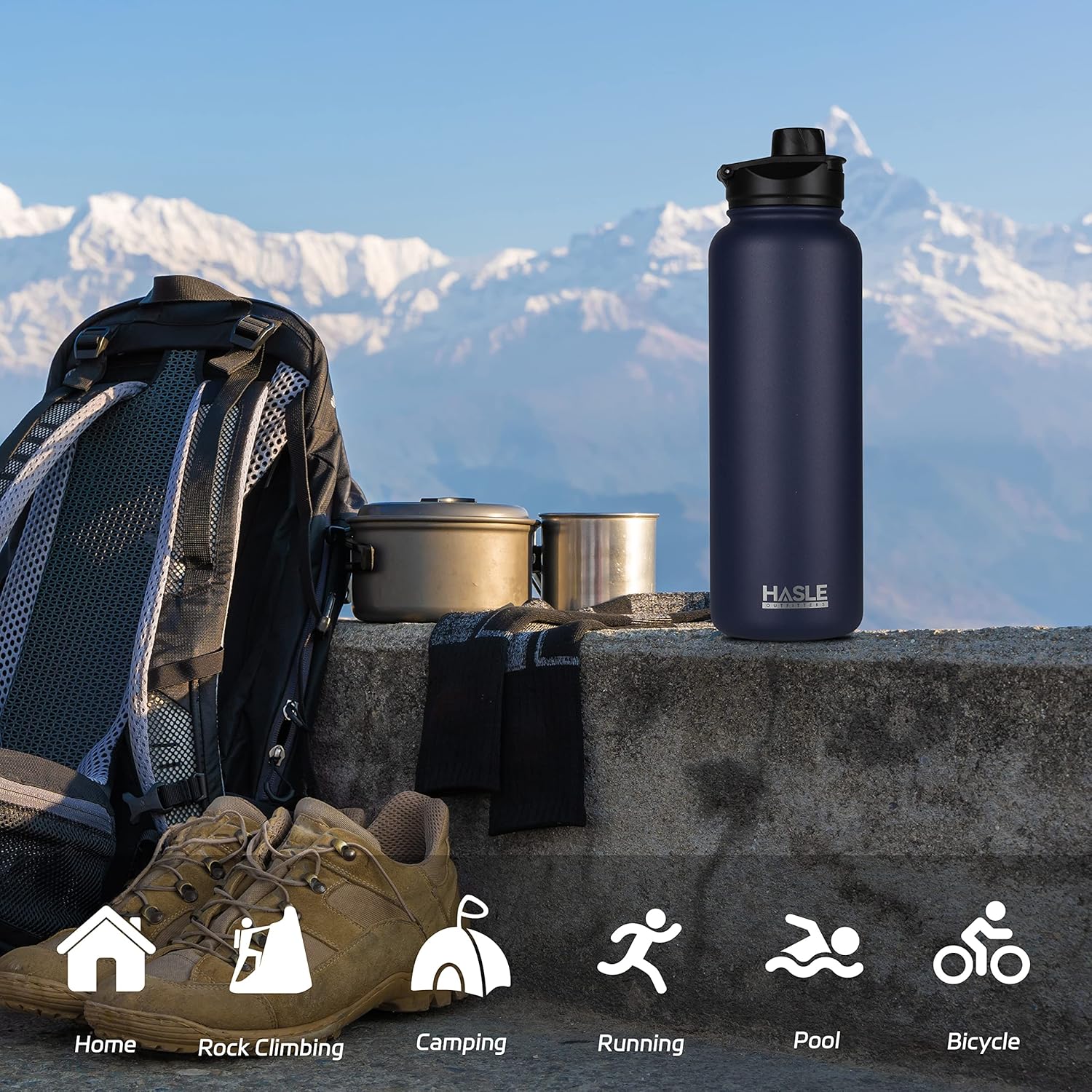 HASLE OUTFITTERS 40oz Stainless Steel Water Bottle, Vacuum Insulated Double Walled Leak Proof Sports Water Bottle with 2 Lids (Straw and Spout Lid) Thermo Mug Keep Cold and Hot(Navy,4)