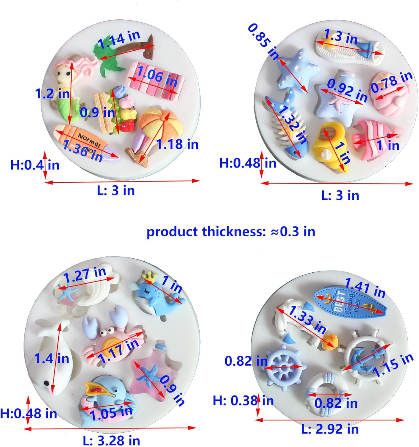 Lovely Small Items Silicone Fondant Molds Set For Cake Topper, Gumpaste, Candy & Chocolate, Polymer Clay and More (Sea life & Beach)