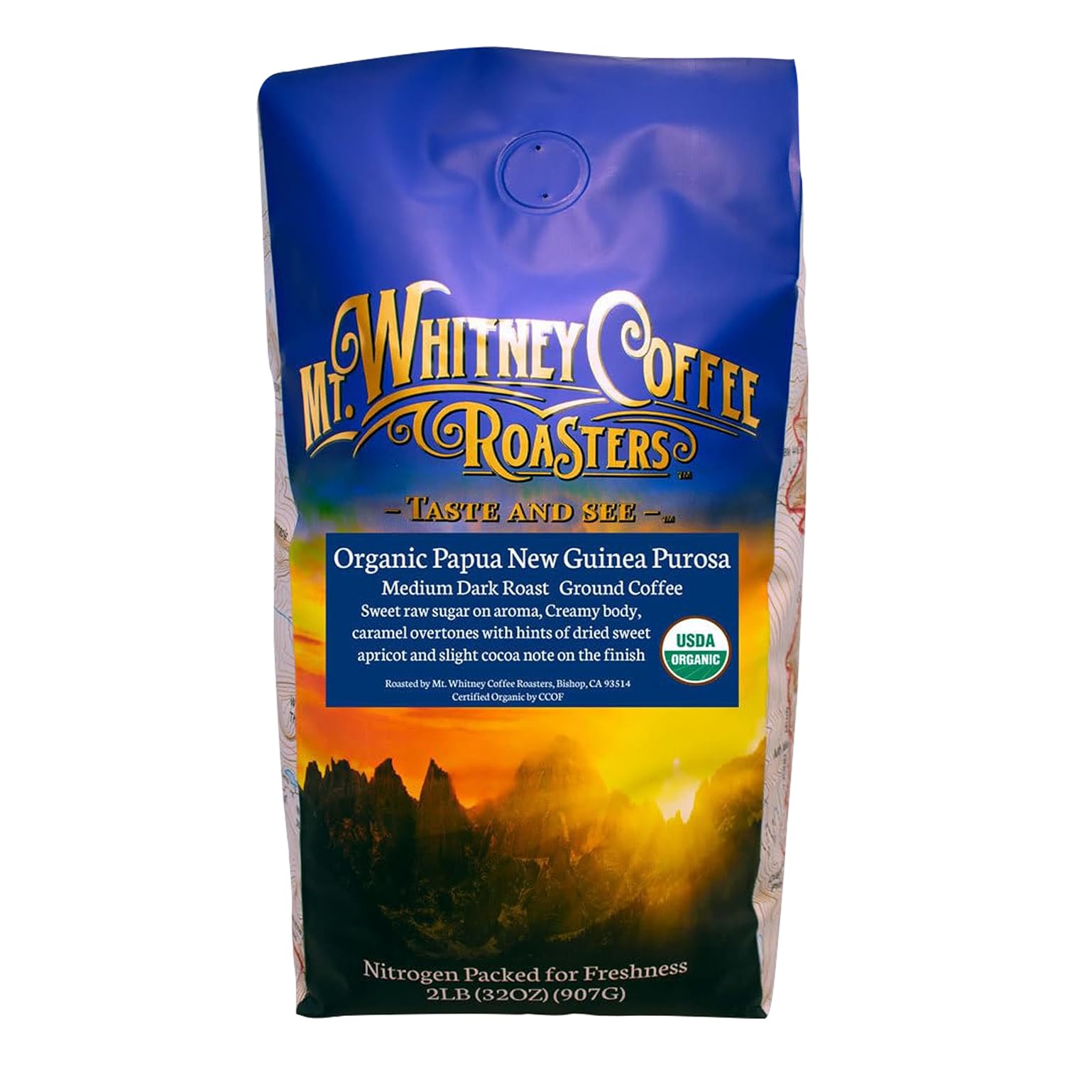 - USDA organic - Mt. Whitney’s shade-grown organic coffee is proud to bear the organic seal of approval from the USDA. This means that our medium-dark roast coffee is organic and earth-conscious.