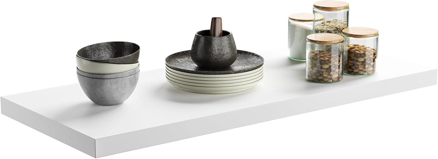 Wall Shelf Set of 1, White Floating Shelves 30 in W x 10 in D x 1 in H, Wooden Floating Wall Shelf with Invisible Brackets for Living Room/Bedroom/Bathroom/Kitchen Storage and Decor