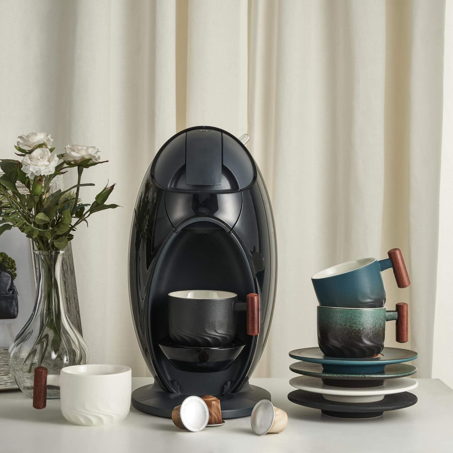 - With their simple design, these double espresso cups offer endless styling options; Slender lines give each a minimal look while wooden handle provides texture; Use it to serve tea or coffee