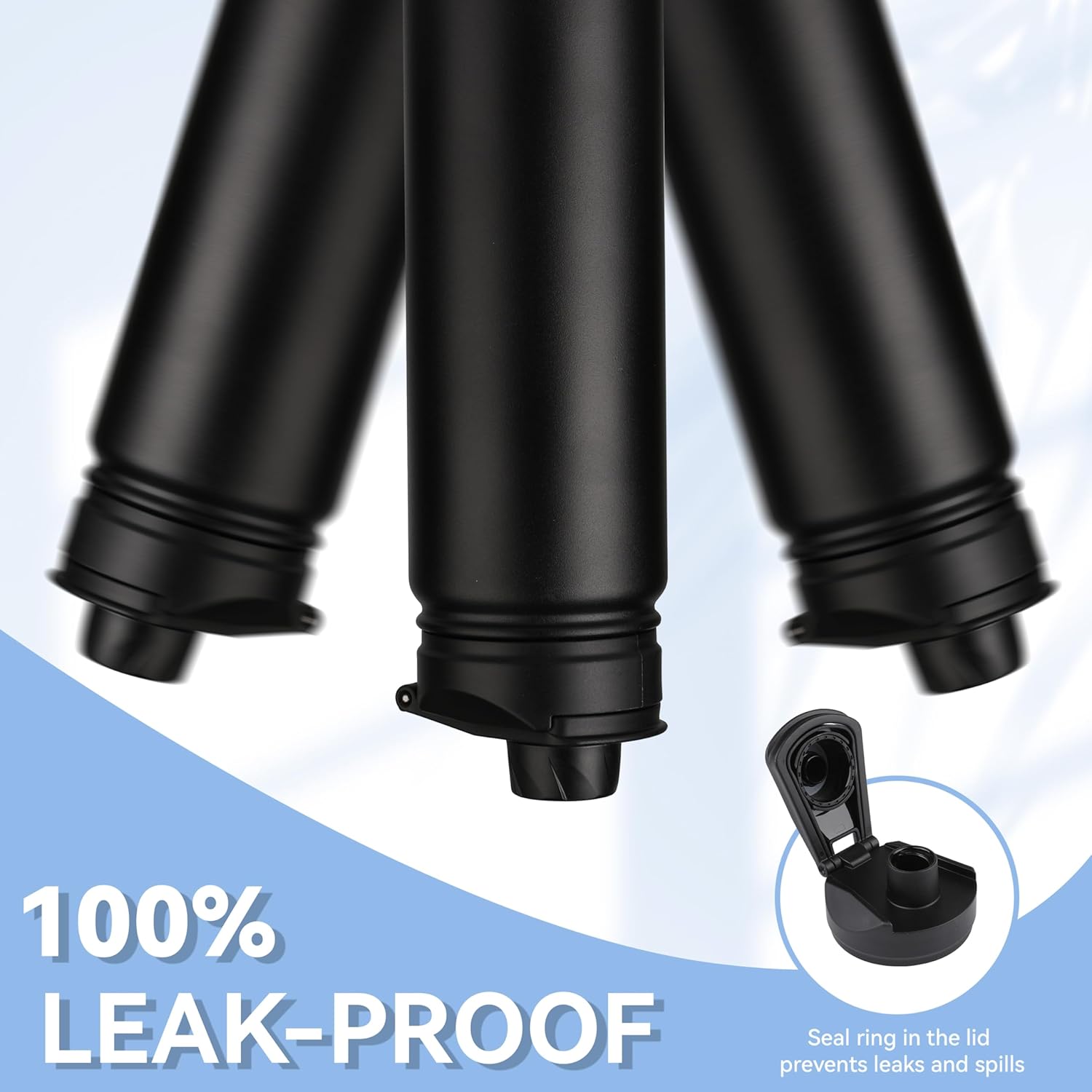 HASLE OUTFITTERS Insulated Water Bottle 22 oz Double Wall Stainless Steel Water Bottle Wide Mouth with Straw Lid & Spout Lid Keeps Cold or Hot(Black,4)