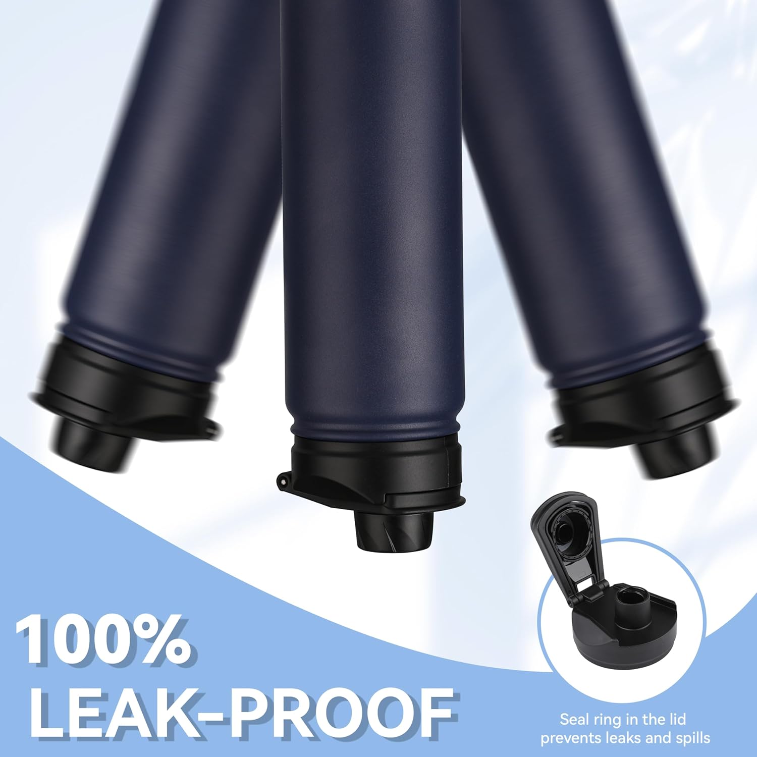 HASLE OUTFITTERS Insulated Water Bottle 22 oz Double Wall Stainless Steel Water Bottle Wide Mouth with Straw Lid & Spout Lid Keeps Cold or Hot(Navy,1)