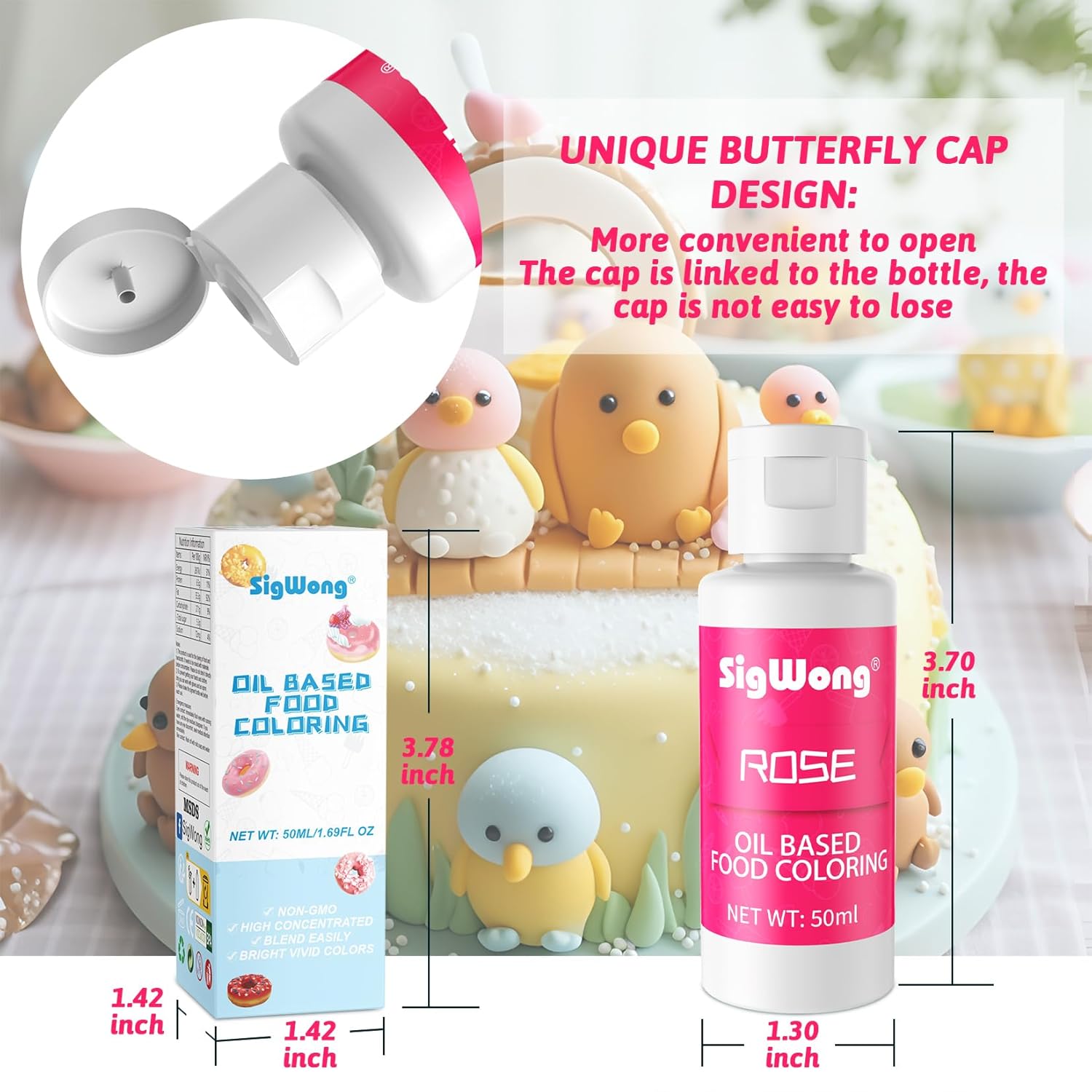 Oil Based Food Coloring for Chocolate - 50ml Rose Upgraded Edible Oil Based Food Dye for Cake Decorating, Baking, Candy Melts, Cookie, Icing Frosting, Fondant, Meringues - 1.69 Fl.Oz Bottles