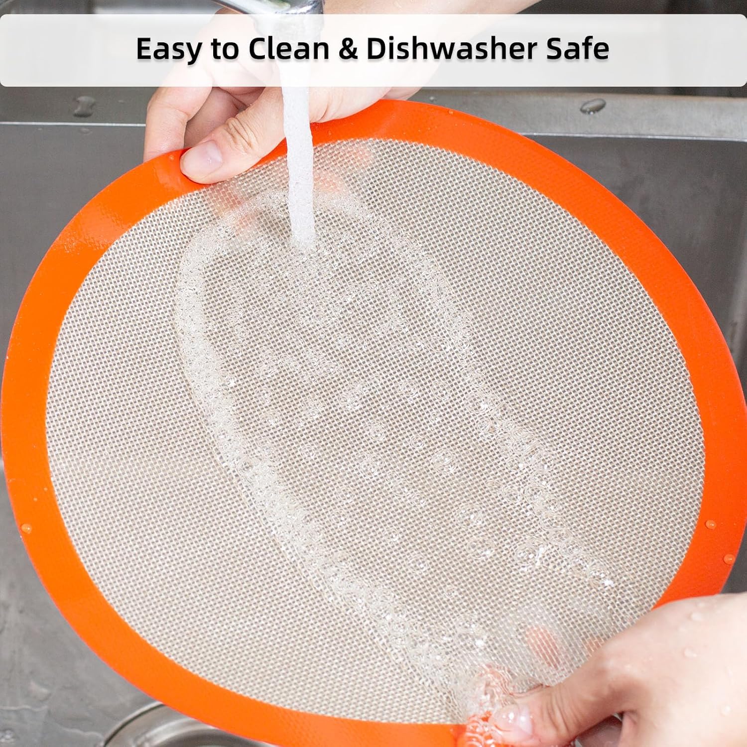 - đăSMOOTH SURFACE, TOUGH AND TENSILE INTERIORăThese non-stick silicone round baking mats 12 inch are easy to use whether you are highly skilled in baking or not. With smooth, shiny surface, you will find the cleanup an easy peasy. Just simply rinse off in warm soapy water and let it dry. If you want to maximize time saving, dishwasher is also a good alternative. On the other hand, with tough & tensile interior, theyâre very durable which helps you save money imperceptibly day by day.