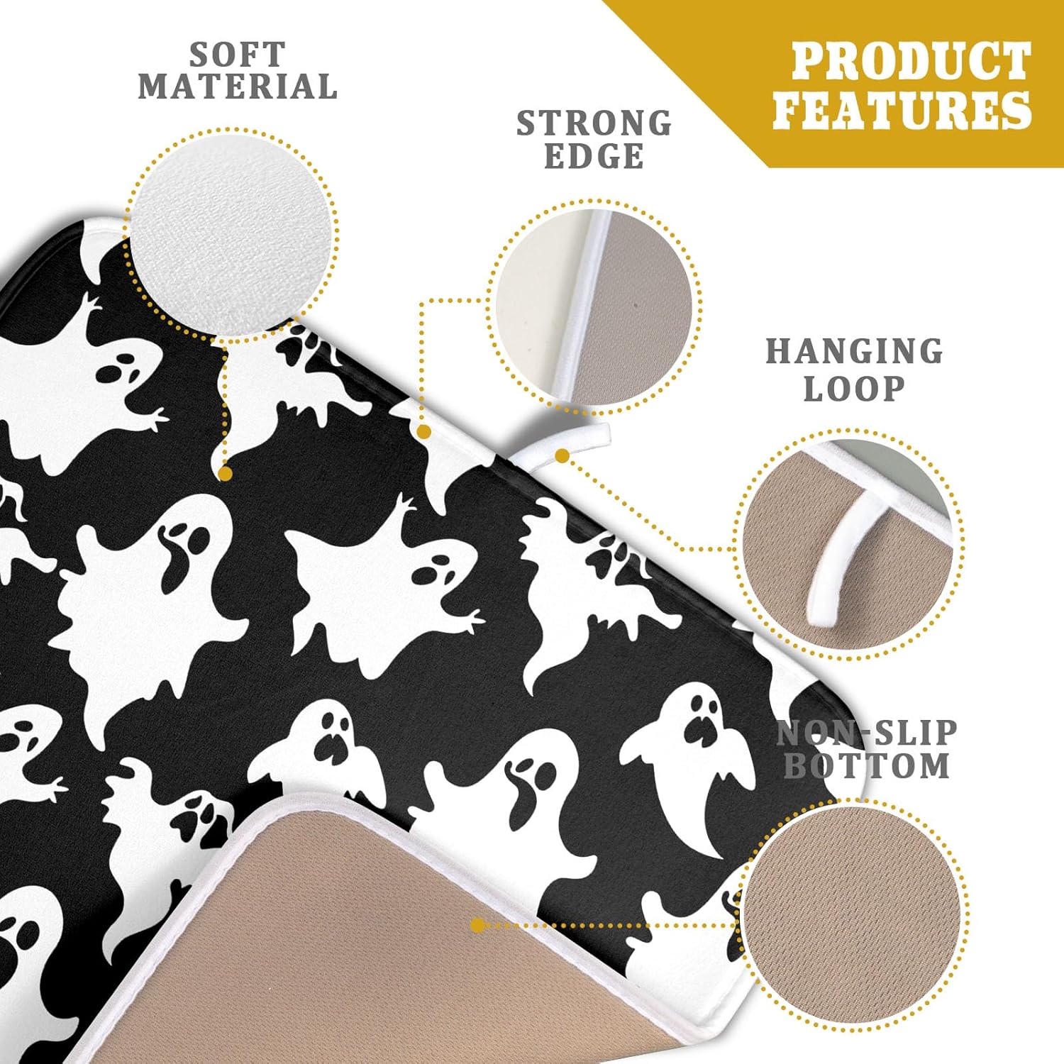 - 3【Unique Design】: Halloween style dish drying mats with vibrant bright ghosts pattern, which can add more charming charm to your kitchen office or coffee bar counter. The drying mat for kitchen counter with unique hanging rope design that can be hung without occupying any space,soft and foldable, easy to store.
