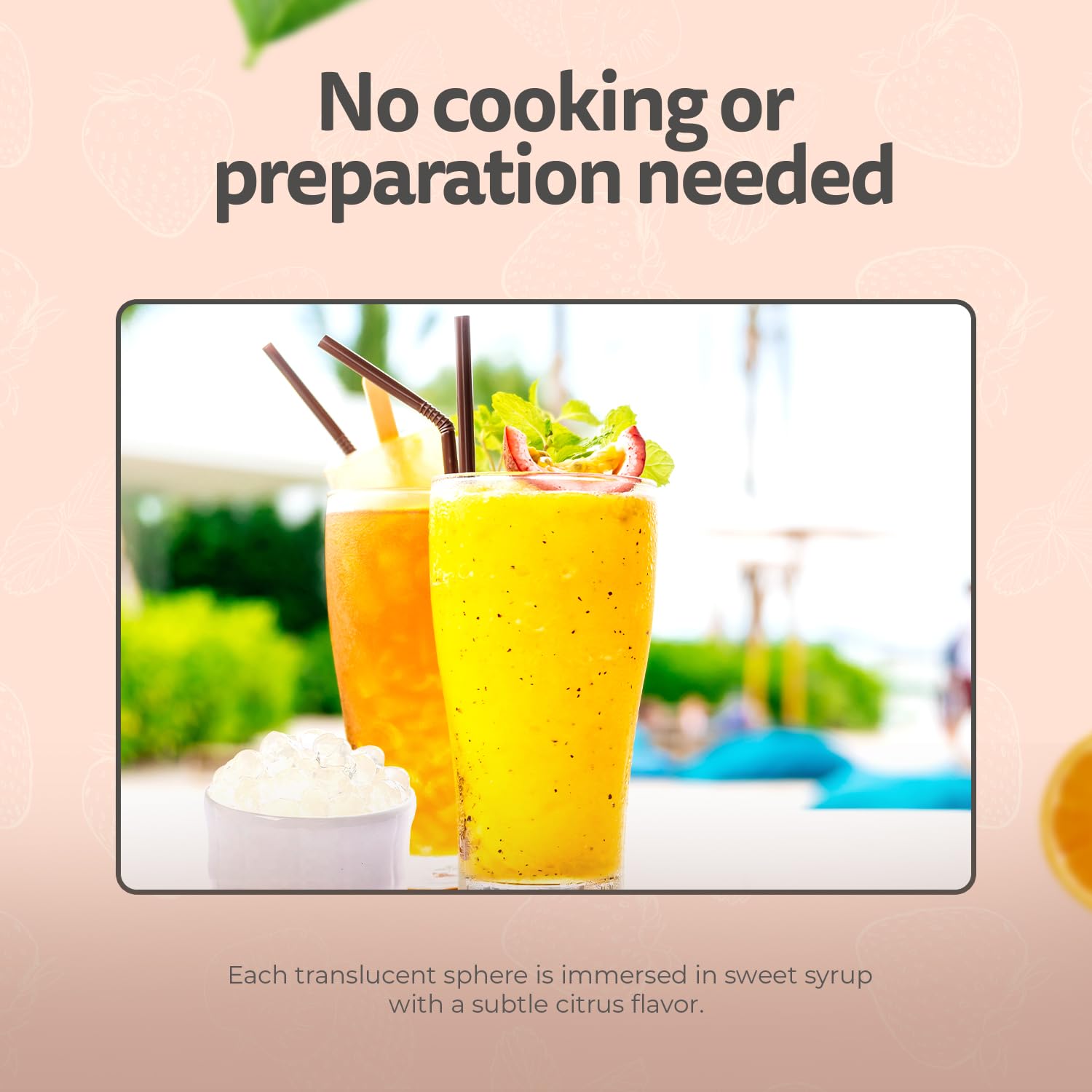 - ๐๐จ๐๐ญ ๐๐ก๐๐ฐ ๐๐ง๐ ๐๐ฐ๐๐๐ญ ๐๐ข๐ญ๐ซ๐ฎ๐ฌ ๐ ๐ฅ๐๐ฏ๐จ๐ซ: Delight in the jelly-like texture and subtle citrus taste of each 1 cm crystal boba pearl. Soaked in sweet syrup and designed to be soft and easy to chew, these crystal boba pearls enhance every bite and sip with a fun and satisfying mouthfeel.