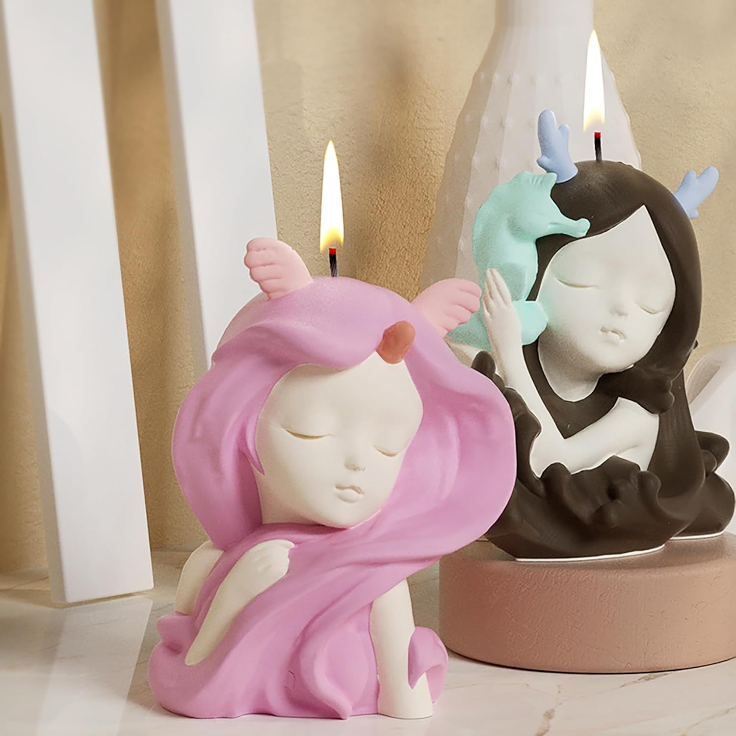 3 Pack Sleep Beauty Candle Mold - Resin Casting Silicone Molds for Home Decor & Candle Making Wave Spiral Mold