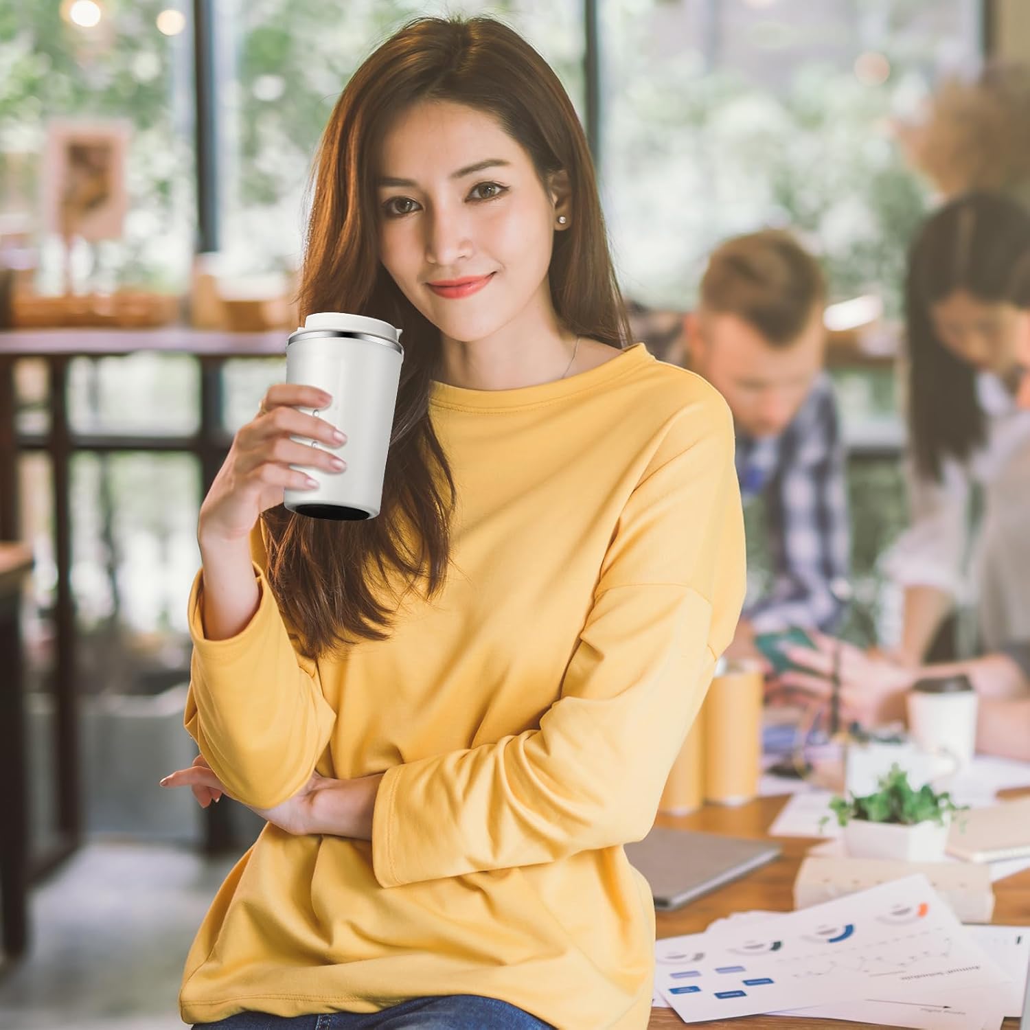 Sieral 4 Pcs 13 oz Travel Coffee Mug Insulated Reusable Coffee Cups with Leakproof Lid Stainless Steel Portable Tumbler for Keep Hot or Ice Milk Tea(White)