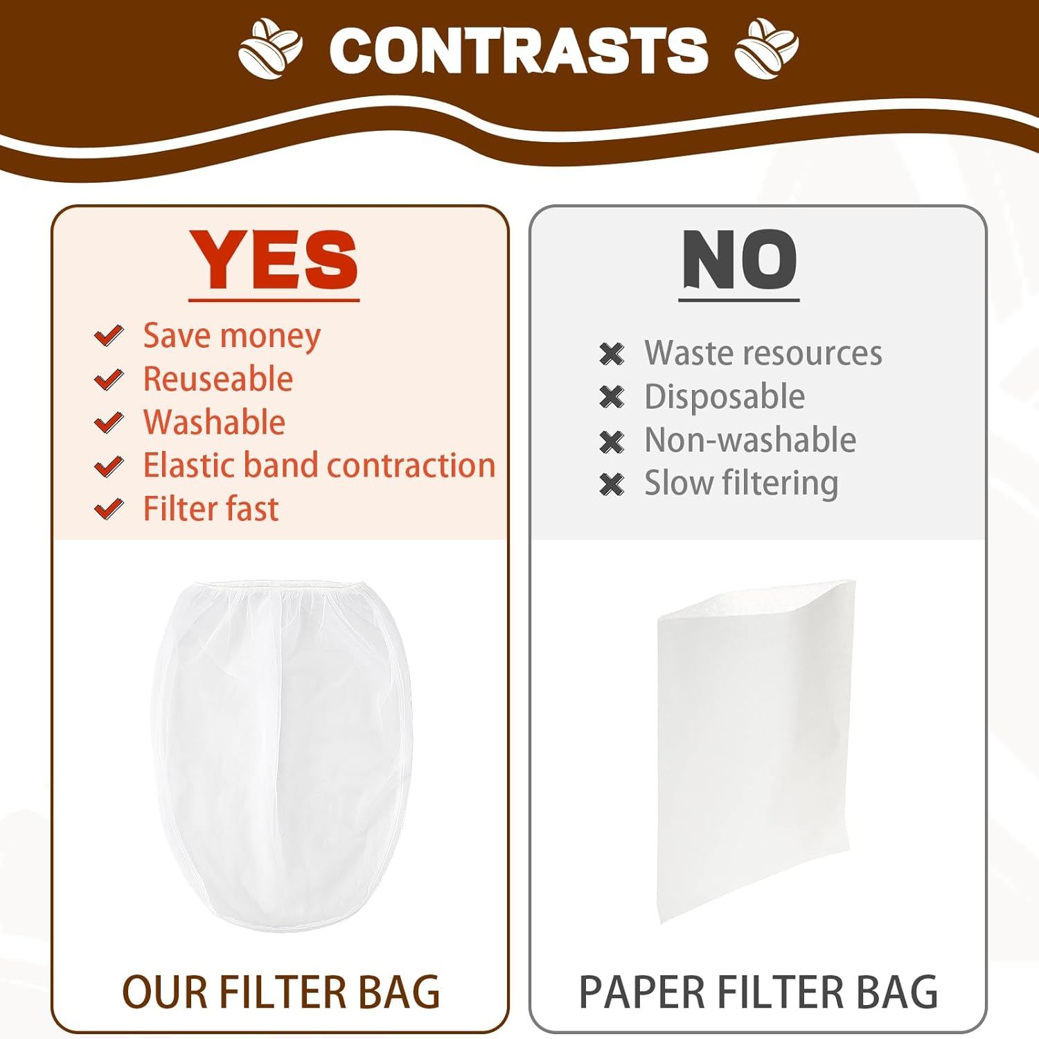 - 【Reused & Cleaned Filter Bag】 - Easy to clean, coffee cold brew bags are washable for reuse, turn the cold brew bag inside out, rinse under the tap and air dry. Please clean it and use it. It is recommended to use a new filter bag after 2-3 months. Save money than disposable filter bags.