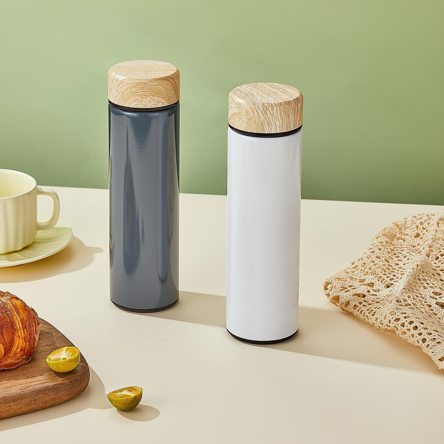 - 【PREMIUM Material】The inner wall is made of 18/8 grade food grade stainless steel and the outer case is made of high quality 18/8 stainless steel. They also have the silicone bottom which is designed to prevent them from sliding and spilling. Other parts of these Travel mugs are made of BPA-free PP materials ,food grade contact silica gels and 100% Co-polyester plastic that make them Safe and Healthy to use.