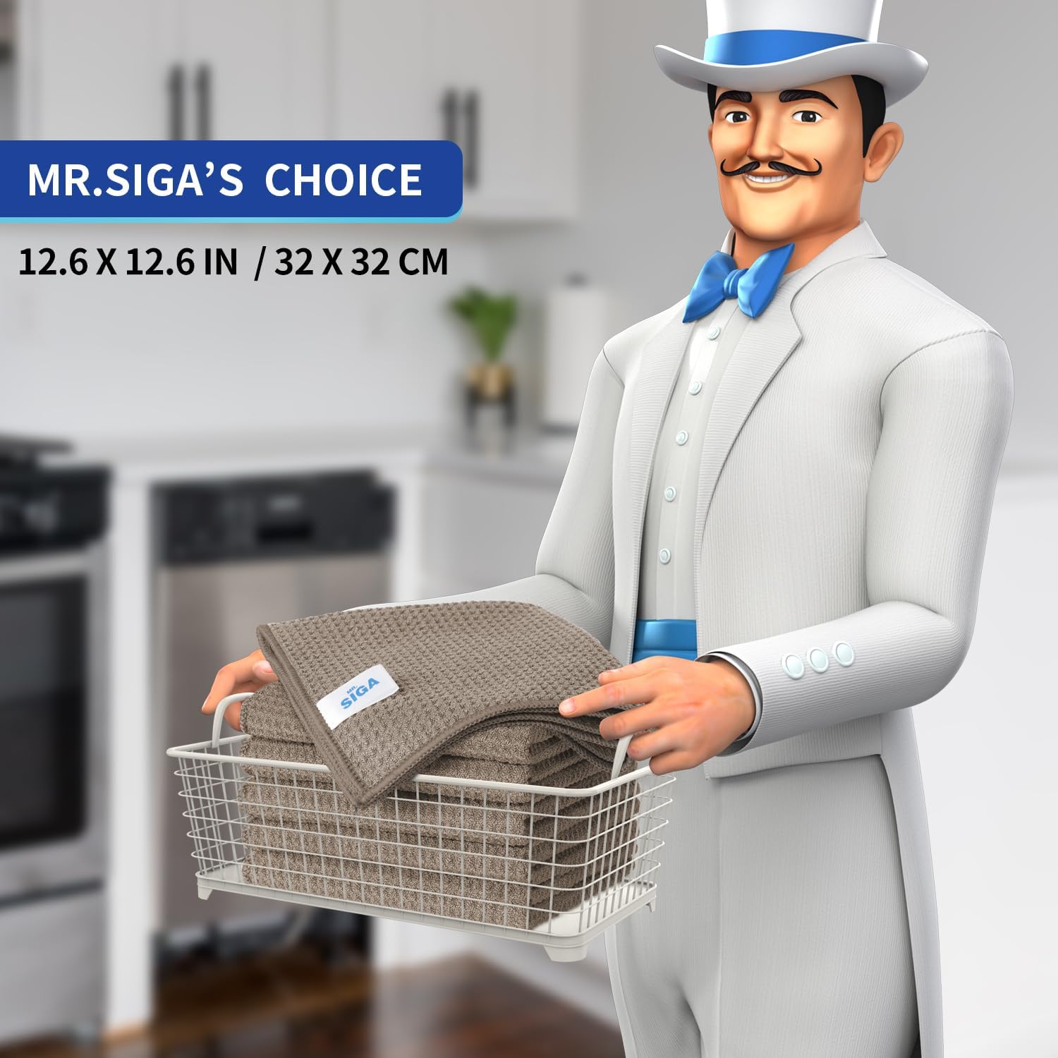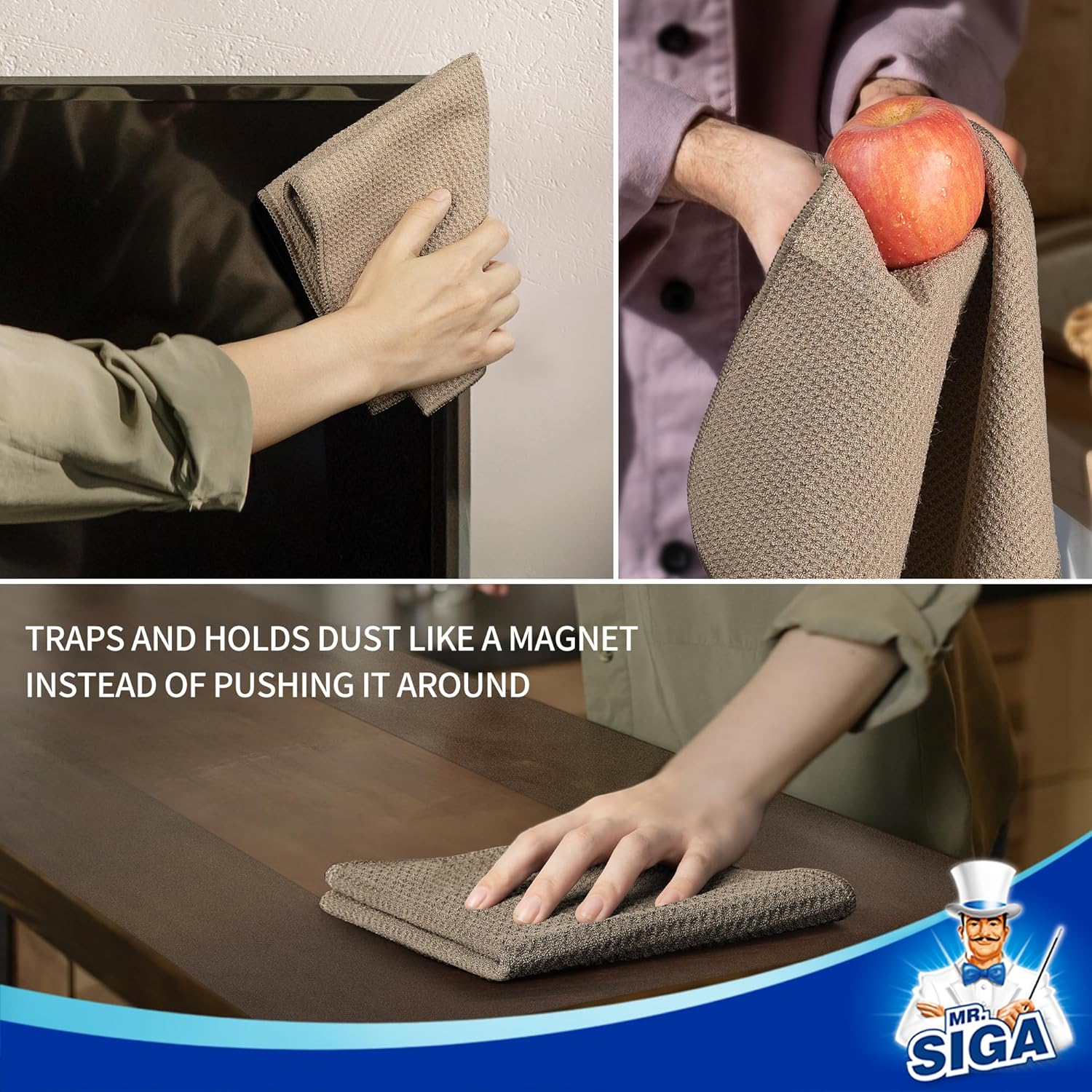 MR.SIGA Waffle Pattern Cleaning Cloths, Reusable Absorbent Microfiber Cleaning Towels, Ultra Soft Microfiber Kitchen Cleaning Rags, 6 Pack, Sandy Brown, 12.6 x 12.6 inch