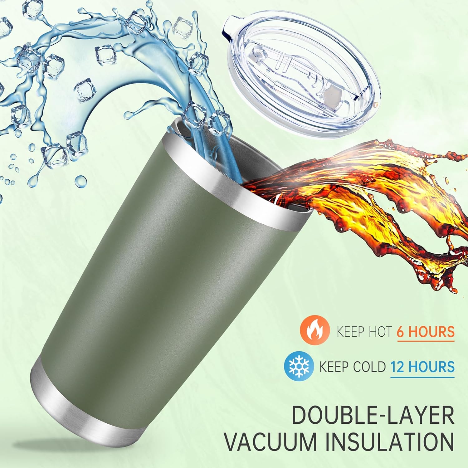 20 oz Tumblers Bulk Stainless Steel Tumbler with Lid Double Wall Vacuum Insulated Coffee Mug 20oz Powder Coated Cup for Hot and Cold Drinks, Army Green, 12 pack