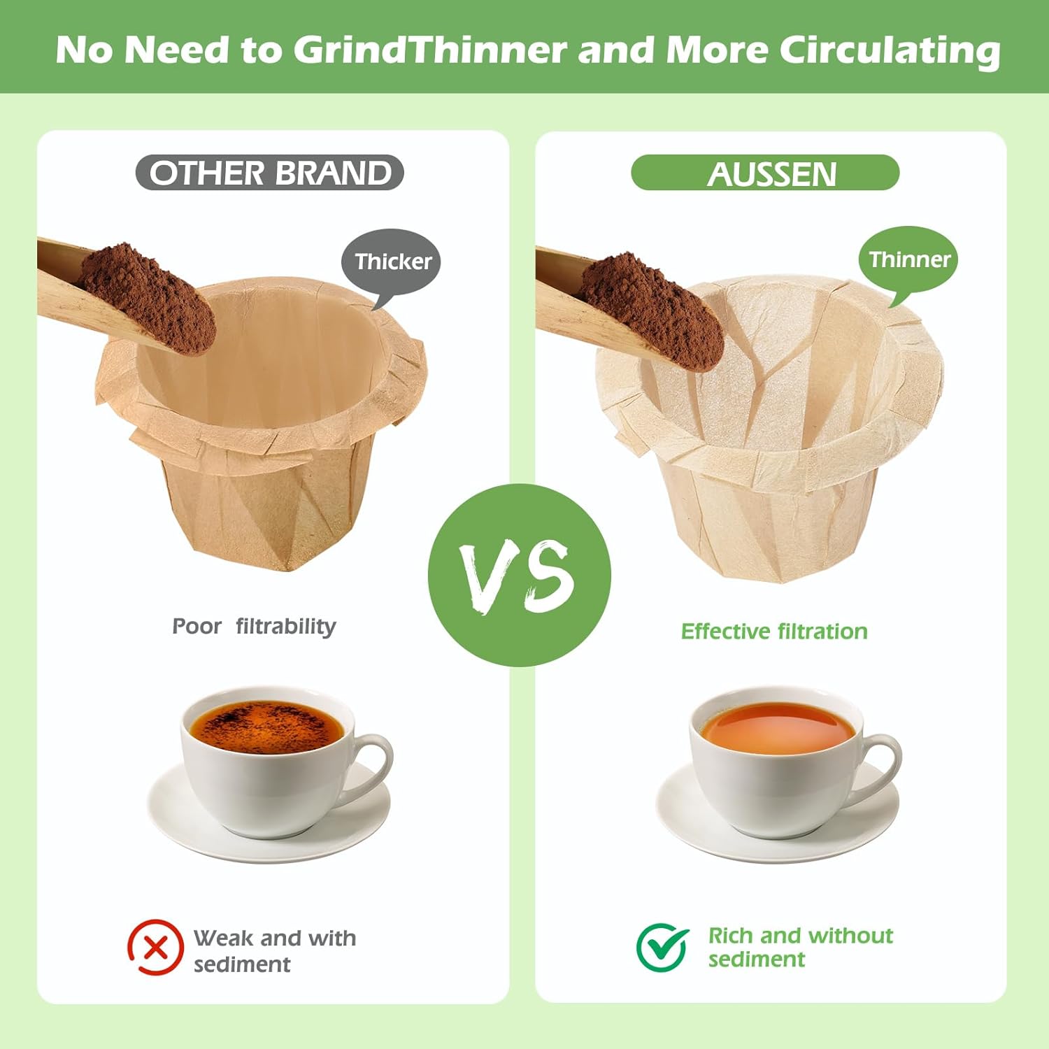 Aussen Disposable Coffee Paper Filters Replacement Kerig Filter Fit All Keurig Single Serve Filter Brands Compatible with Reusable Single Serve Pods Keurig Coffee Maker (Natural, 200pcs)