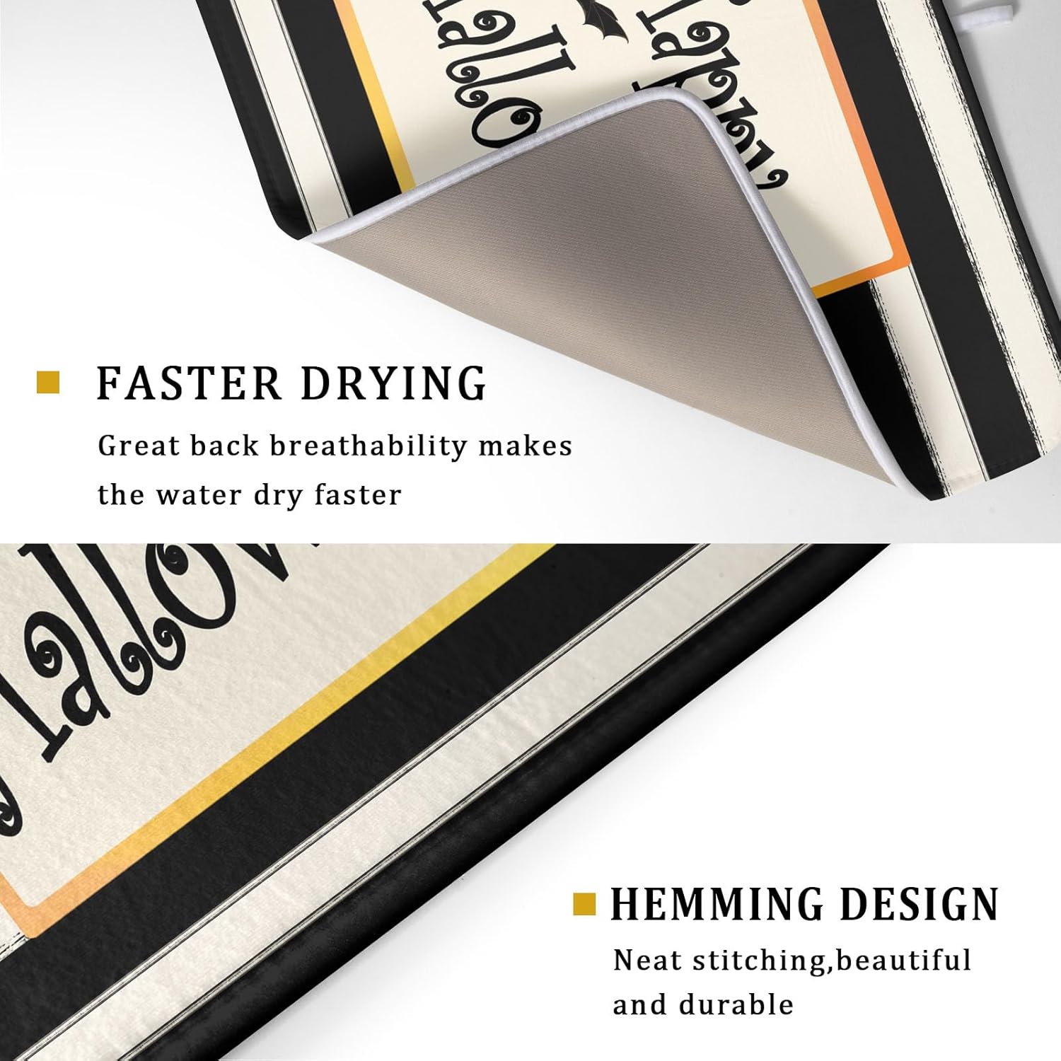 Happy Halloween Bats Dish Drying Mat for Kitchen Counter,Black and White Stripe Drying Mat 18 x 24 Inch with High Absorbent Microfiber Dish Drying Pad Dish Rack Pad Drainer Mat for Coffee Bar