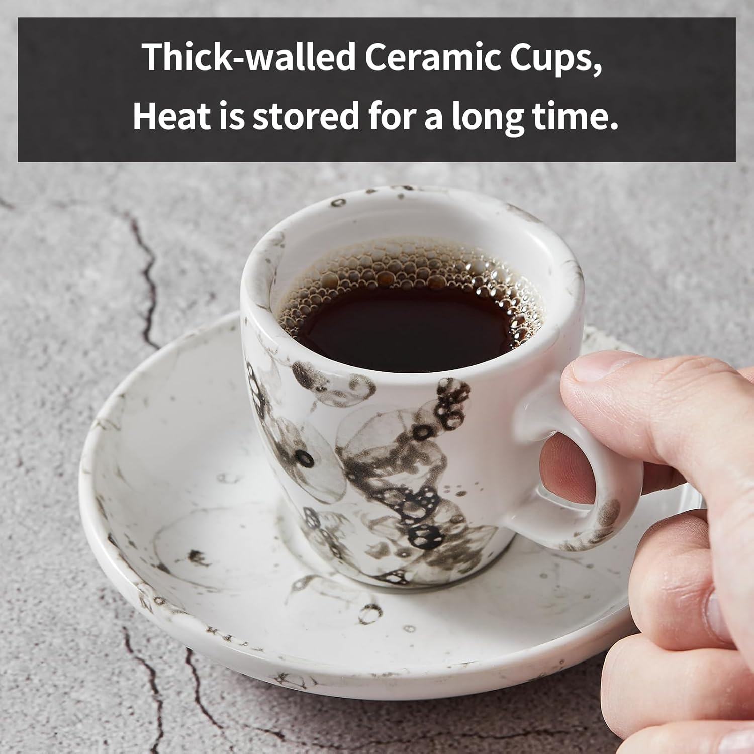 - 【The Elegant Gift】The marble porcelain mini coffee cups with saucers were beautifully and safely Gift box packed.It is a decent gift for your friends and family on Housewarming,Wedding party,Christmas.Any cafes, restaurants, and exquisite decorations are inseparable from it.
